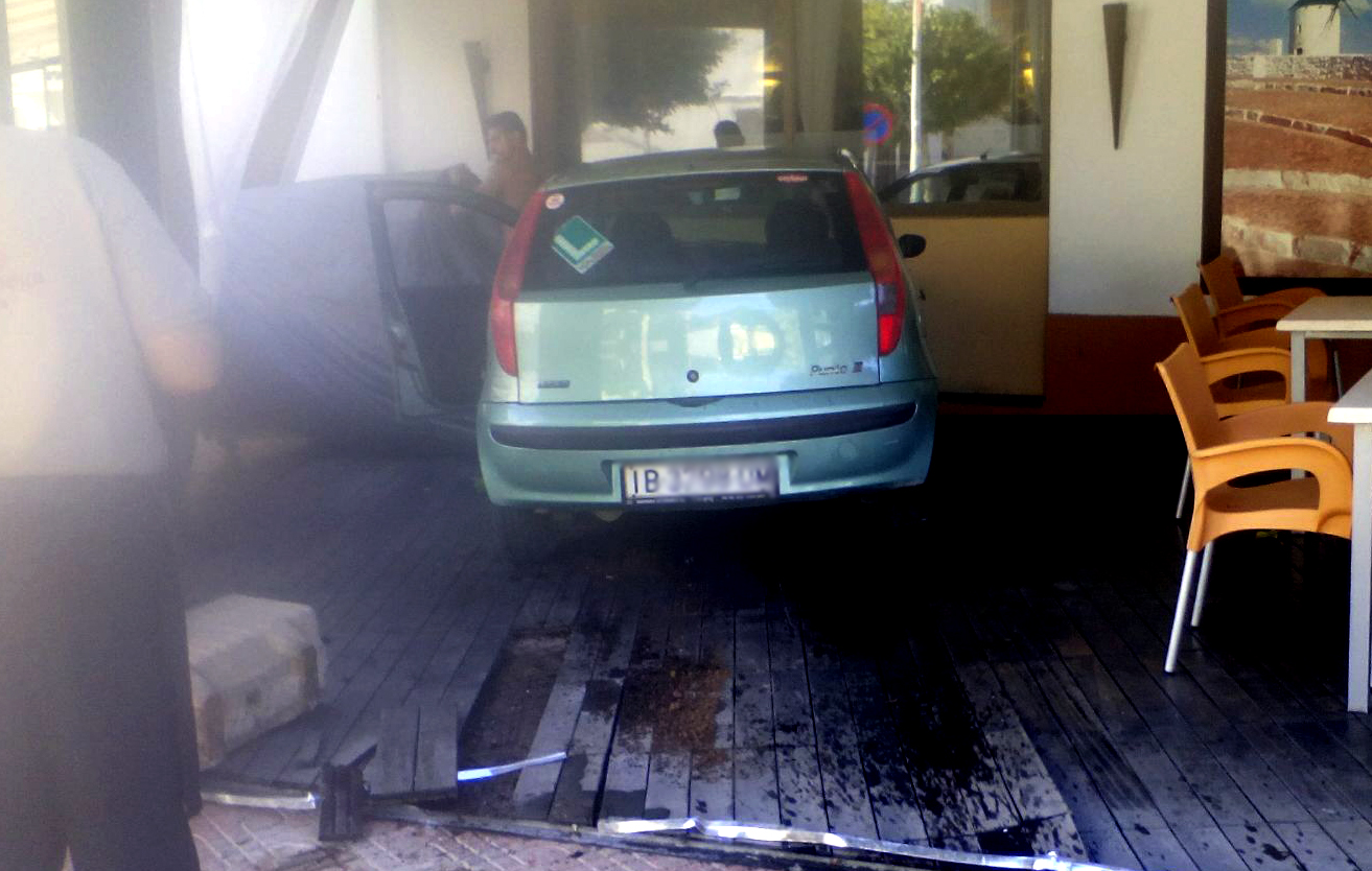@Noudiari/Un conductor ha perdido el control de su vehículo a primera hora de la tarde y se ha estrellado contra la pared de un resturante en Sant Antoni. El vehículo ha entrado a la terraza del establecimiento y ha terminado empotrado contra el muro. En el accidente no se han registrado heridos.