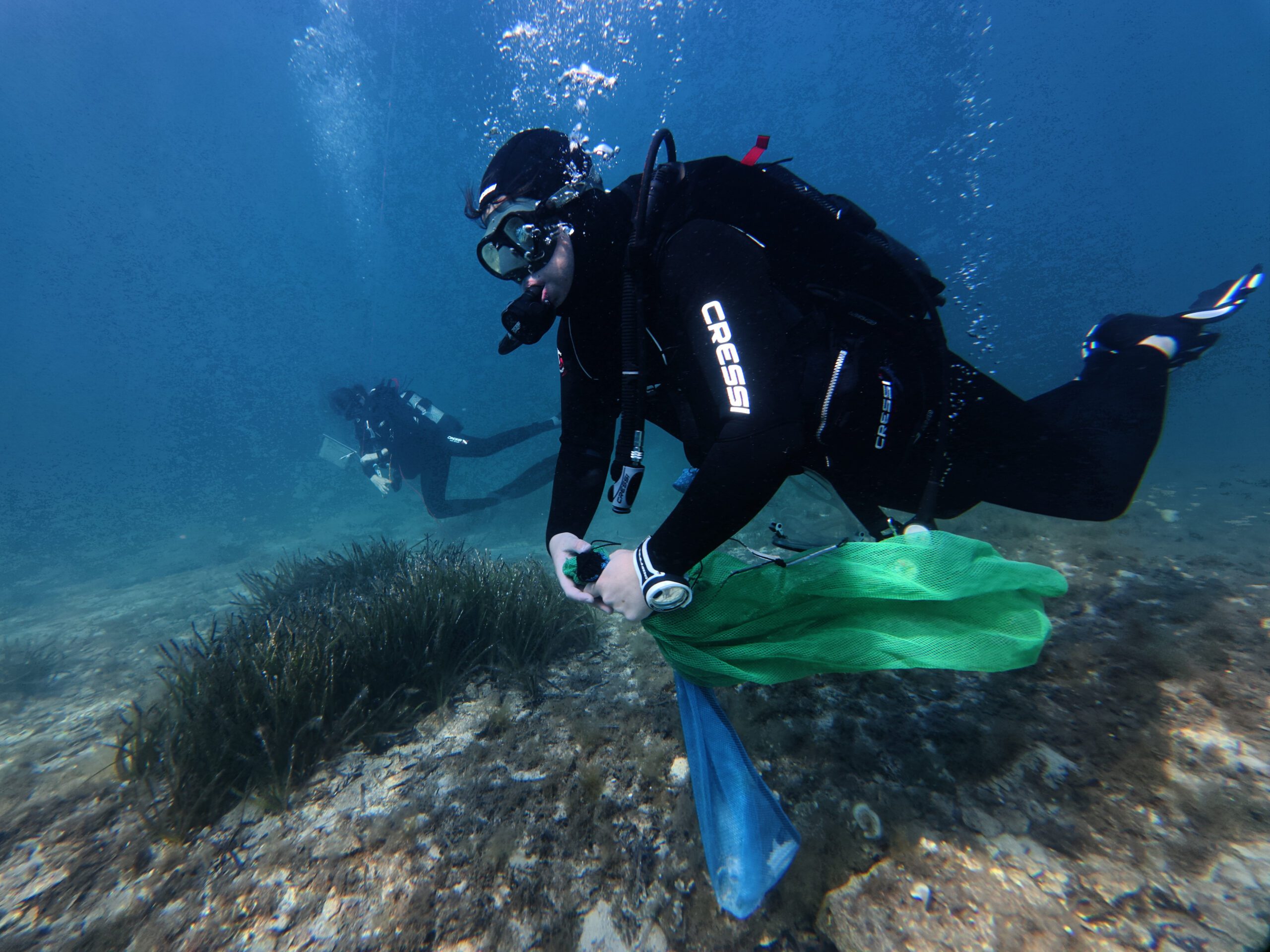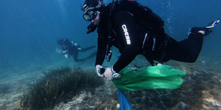 Inmersión en fondos marinos de Formentera, s’Espalmador, donde recogen plásticos hallados.