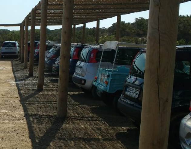 Aparcamiento para coches en el Parque Natural de Formentera.
