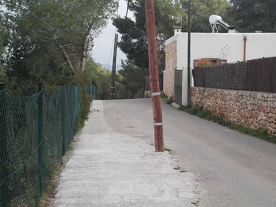 @Noudiari / Los vecinos del barrio de Siesta, en Santa Eulària, han advertido a través de las redes sociales del peligro que suponen los postes de tendido eléctrico que han quedado en el centro de la calzada en la carretera que sube a la urbanización Buenavista y que enlaza con la Avenida Los Amarantos.