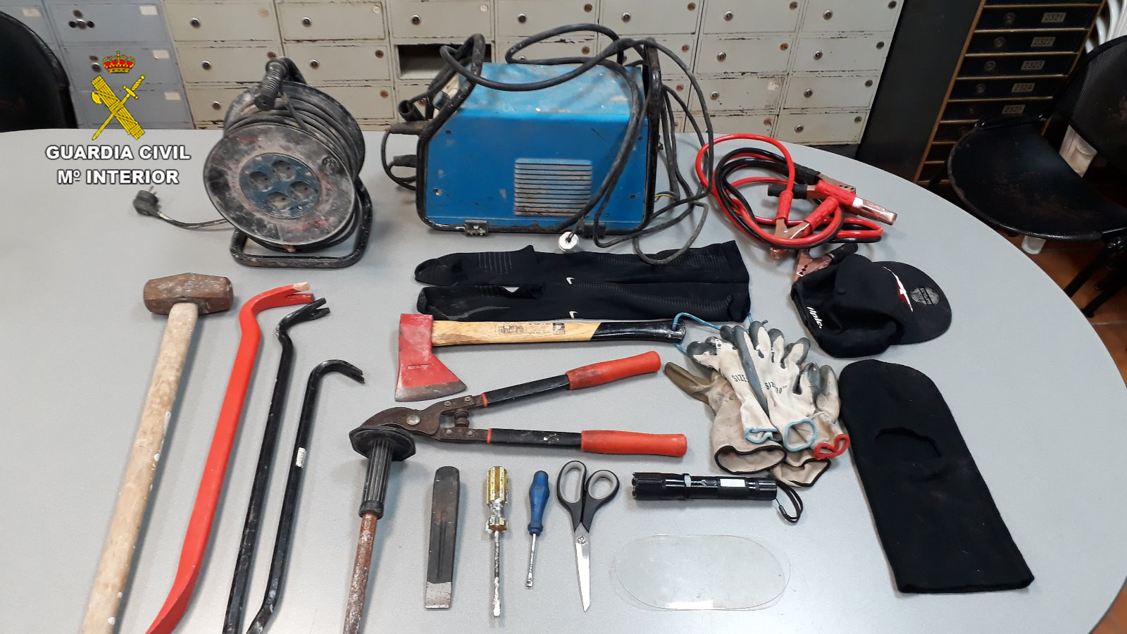 En el momento del arresto se les incautaron diversos útiles para la comisión de delitos contra la propiedad como mazas, patas de cabra, hachas y cinceles metálicos, destornilladores, pasamontañas, guantes y linternas.