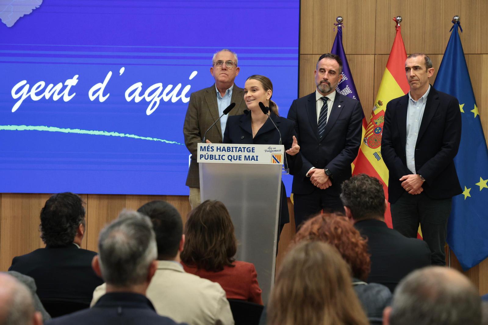 Prohens, acompañada por el conseller de Vivienda, José Luis Mateo, ha presentado estas actuaciones ante alcaldes, concejales y representantes sociales y económicos, destacando que la prioridad es construir vivienda para “gente de aquí”.