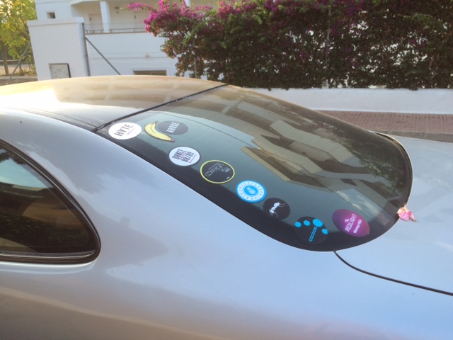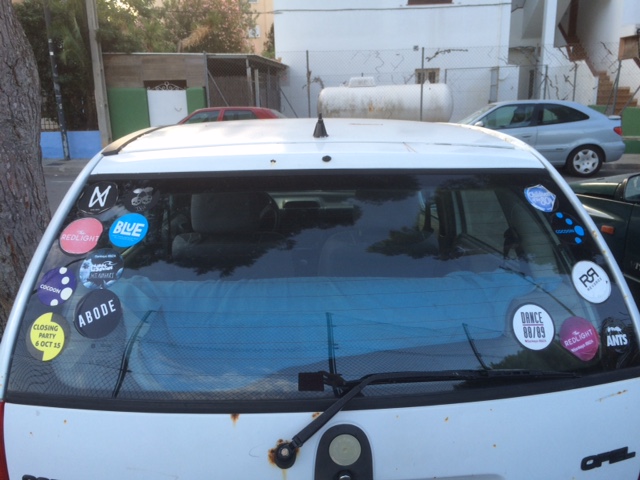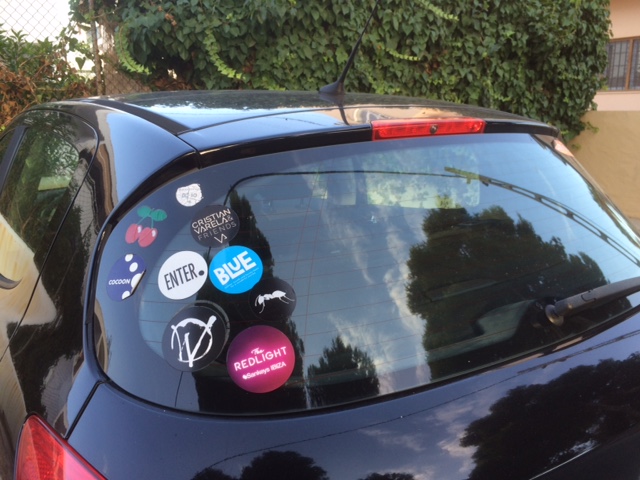 @L.Aversa/Las pegatinas que discotecas, promotoras de fiestas y otros establecimientos de ocio pegan cada día de verano en los coches de particulares en la isla están prohibidas, por lo menos, en el municipio de Ibiza.