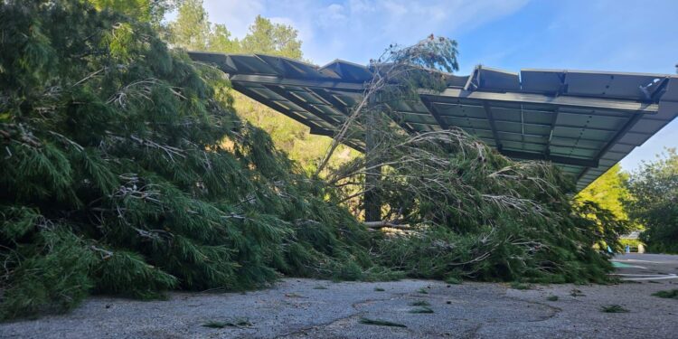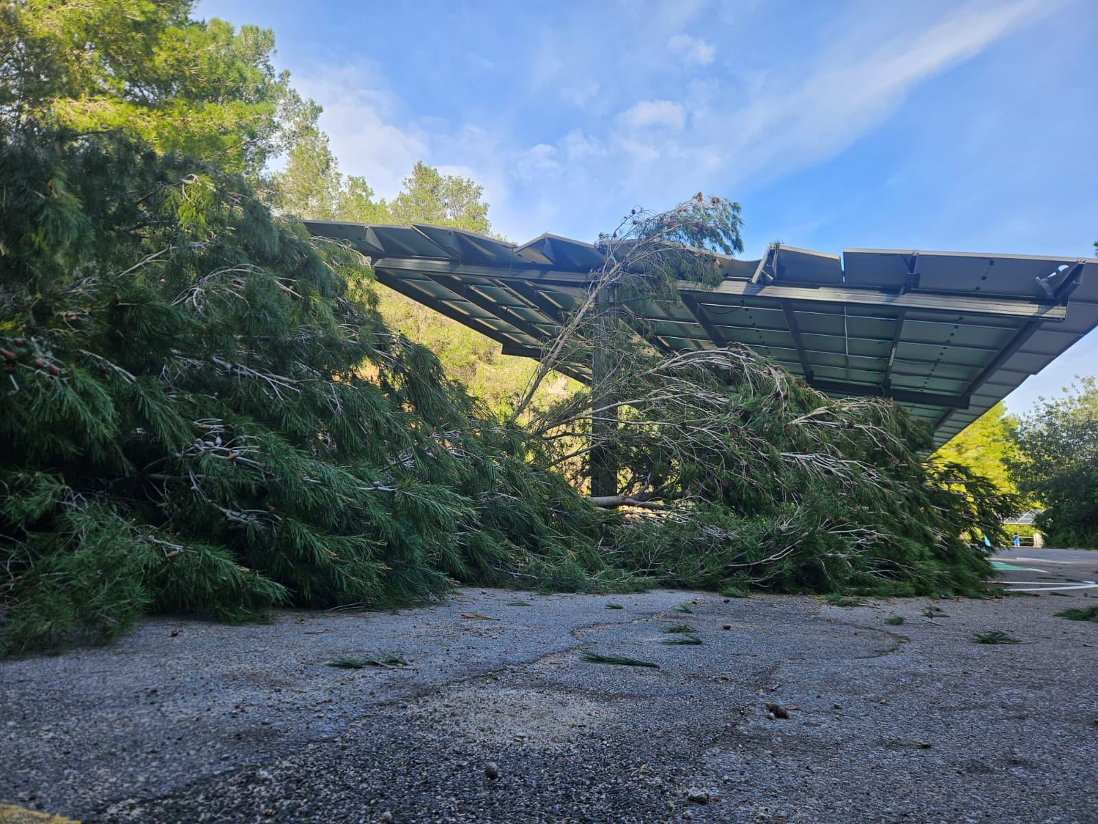Placas solares dañadas por la caída de un pino en S'Arenal Petit, Portinatx. Foto: Ayuntamiento de Sant Joan