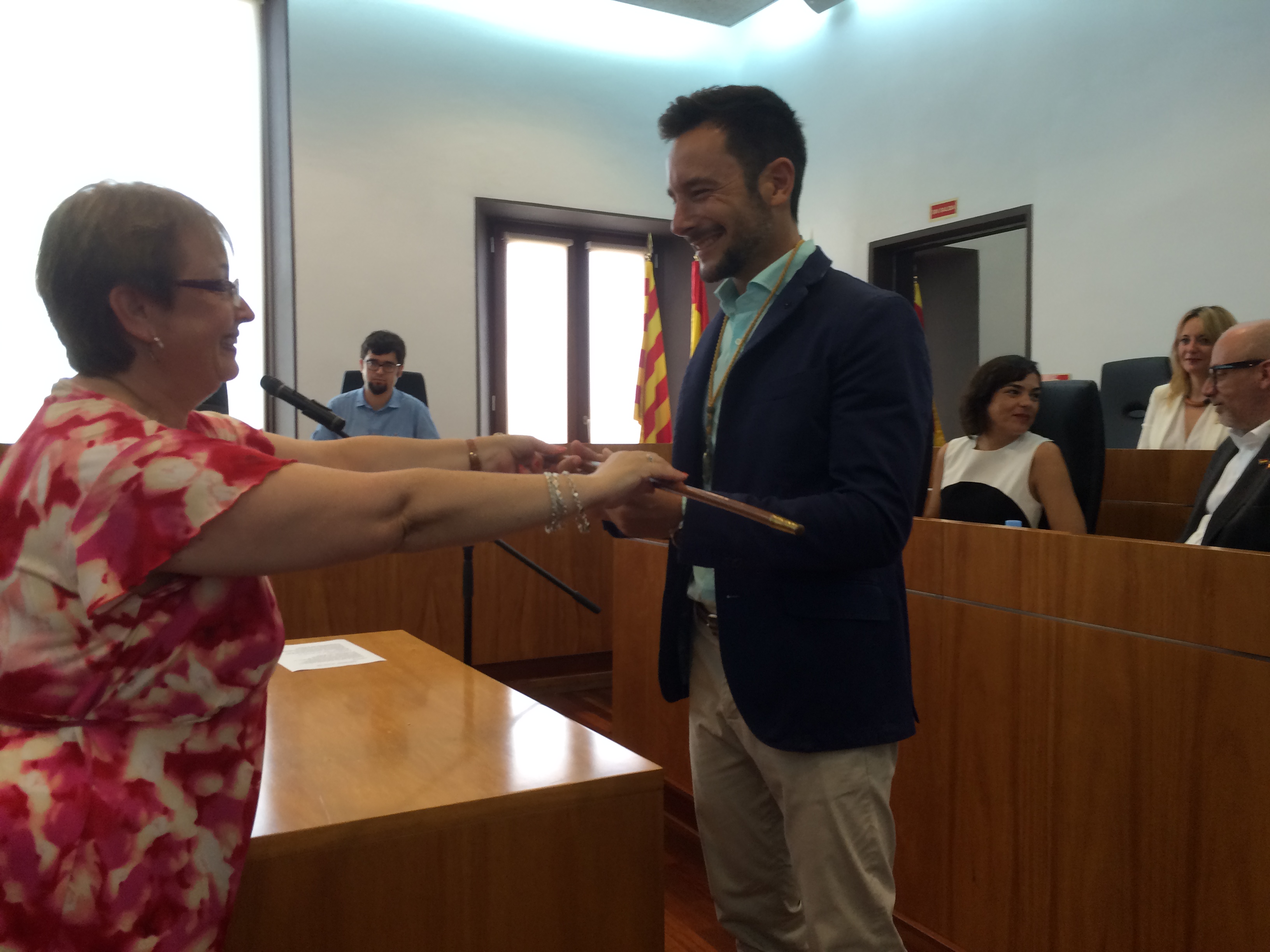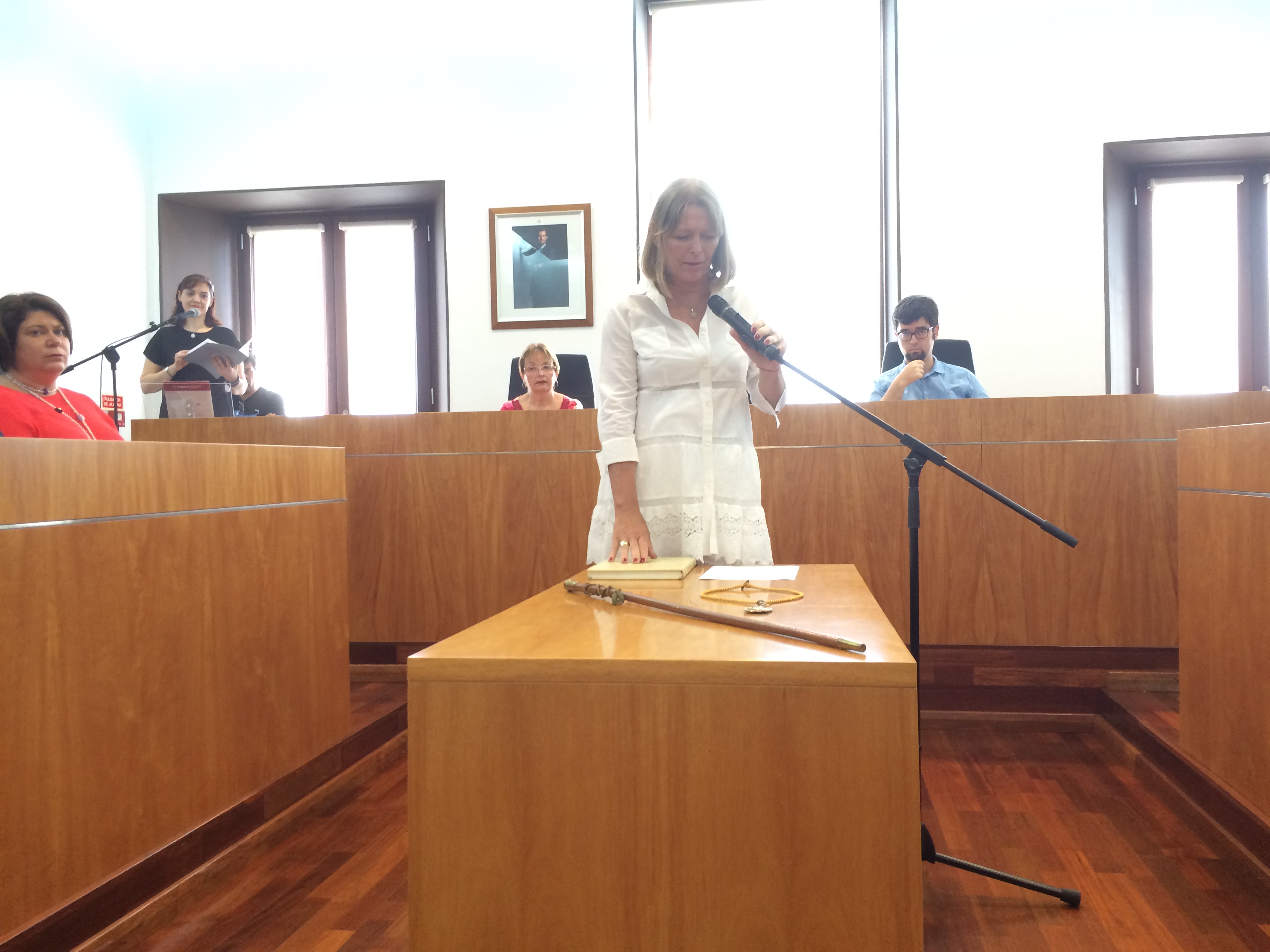 El pleno fue presidido por la mesa de edad, compuesta por dos concejales de Ganyem, Juan José Hinojo y Gloria Corral, que fueron el edil más joven y la concejala de más edad presentes en el pleno. Después de que todos juraran sus cargos de concejales, y que la mayoría absoluta que suman PSOE-Guanyem dieran la Alcaldía a Rafa Ruiz, se procedió a la entrega del bastón de mando y la medalla, que Ruiz recibió de manos de Gloria Corral. Lo habitual suele ser que lo entregue el alcalde o la alcaldesa saliente, que en este caso era Virginia Marí, pero finalmente lo hizo Corral como concejala de más edad.