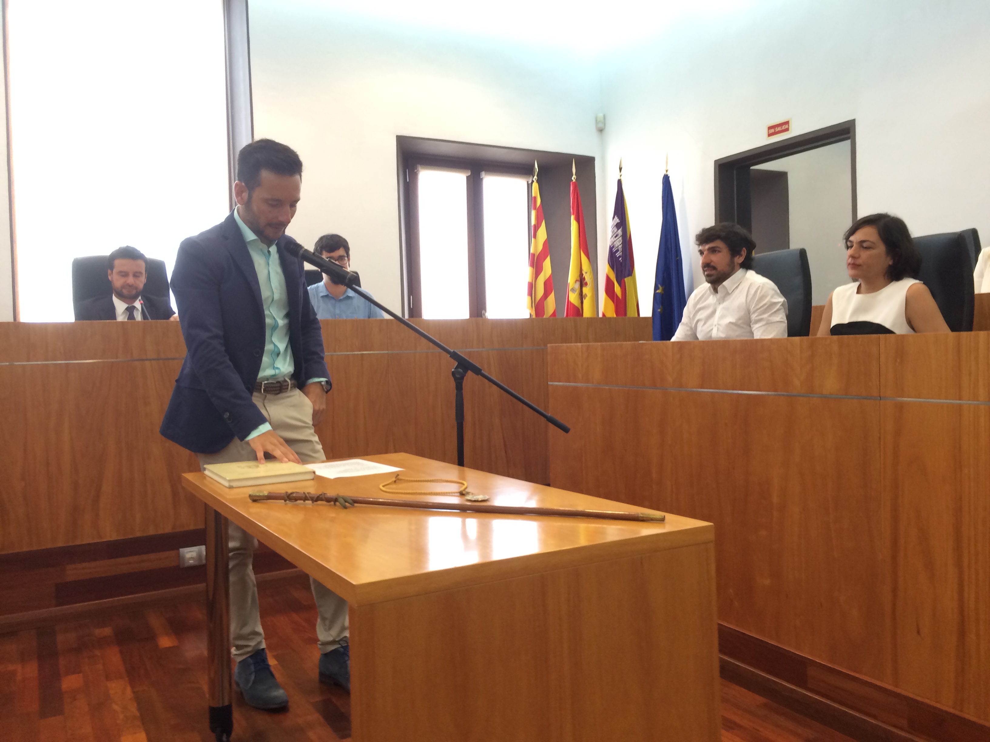 La ceremonia de investidura de Vila fue la más madrugadora de la Isla. A las diez de la mañana y ante una sala de plenos de Can Botino abarrotada de gente, hicieron entrada todos los concejales de la Corporación, que desde ahora estará compuesta por los doce concejales del equipo de gobierno de PSOE-Guanyem, y por una oposición integrada por ocho concejales del Partido Popular, cuya portavoz será Virginia Marí, y por el edil de Epic, Antonio Villalonga.