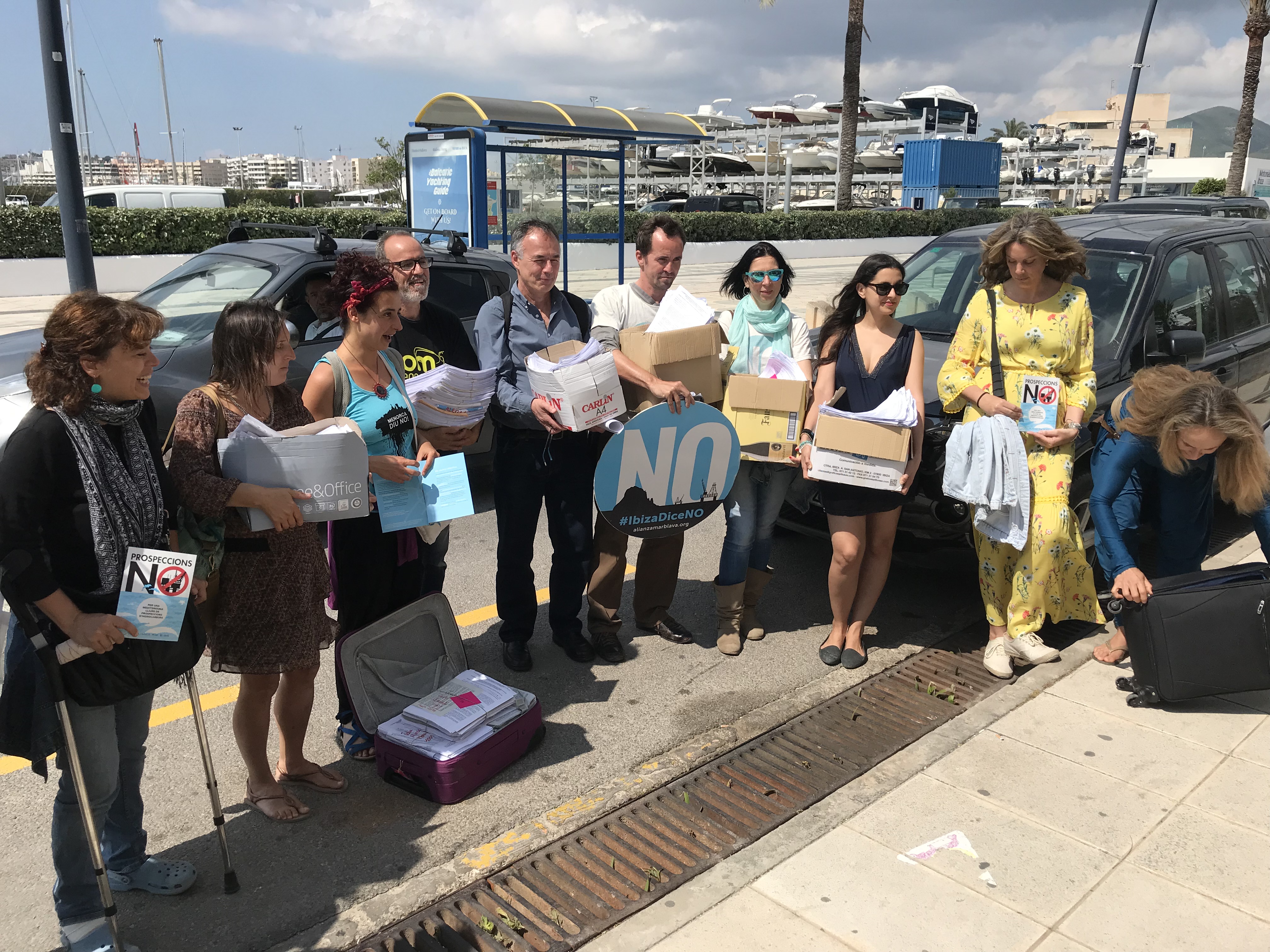 @Noudiari / La sociedad de Eivissa y Formentera ha vuelto a dejar claro que no quiere ni escuchar a hablar de ningún proyecto que tenga relación con las prospecciones petrolíferas en el Mediterráneo. Los representantes de los voluntarios, Alianza Mar Blava, Eivissa Diu No y Eivissa Antipetrolífera han entregado esta mañana 10.425 alegaciones contra el proyecto MedSalt-2, la última ventada abierta por las instituciones para la búsqueda de hidrocarburos en las aguas cercanas a Balears, que promueve el Instituto Nacional de Oceanografía y Geofísica experimental de Trieste. En total, el rechazo a este proyecto ha sumado 25.678 adhesiones.