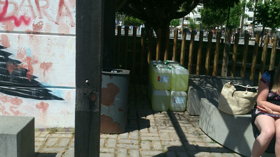 La formación denuncia el estado del parque infantil ubicado en el Passeig de ses Fonts. «A la degradación y dejadez a la que tristemente estamos ya más que acostumbrados se suma ahora la desvergüenza de dejar, al alcance de cualquiera, niños o mayores, garrafas de productos tóxicos, como si de un almacén al aire libre se tratara. Resulta sencillamente bochornoso», indican.