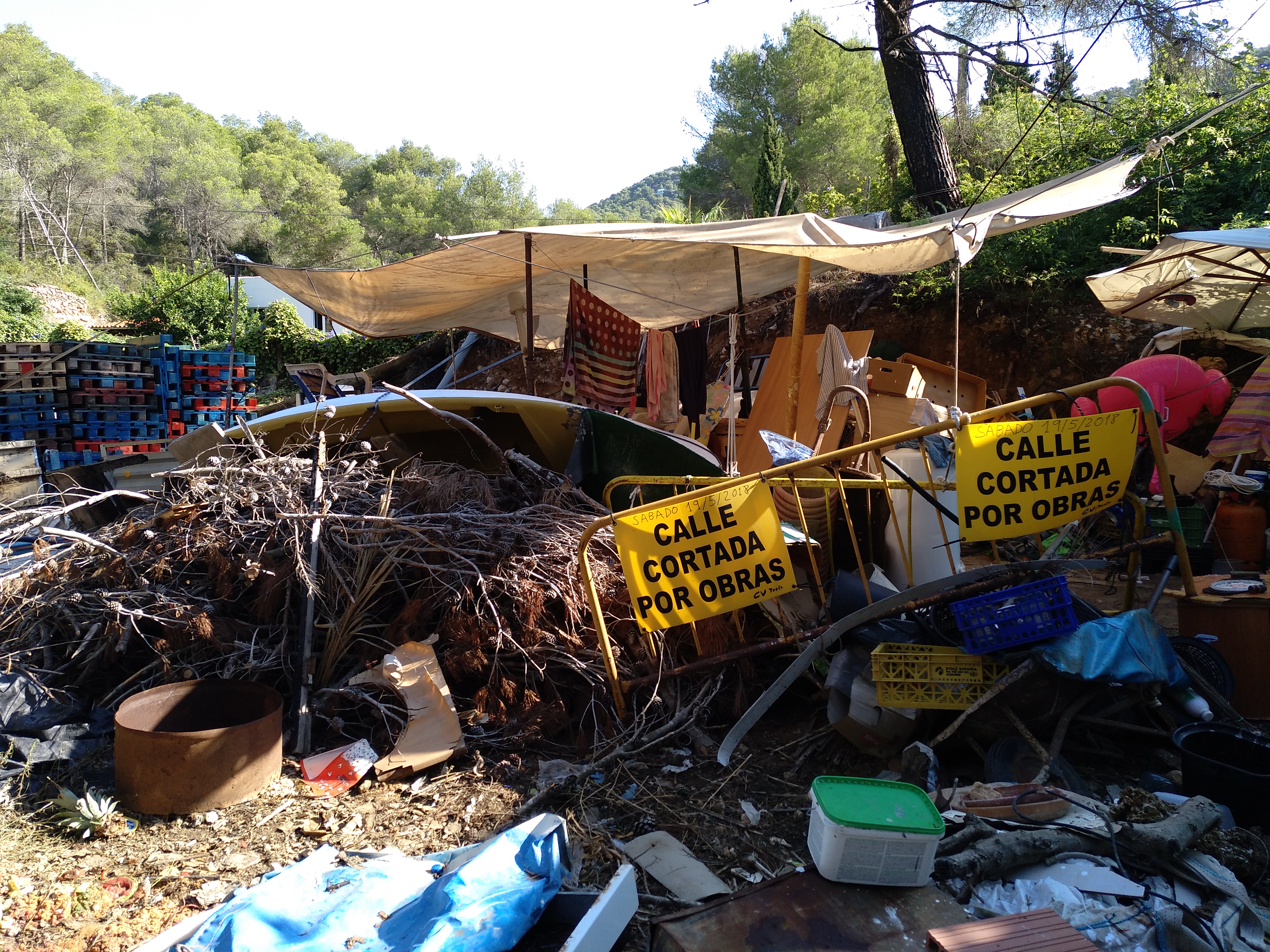 @Noudiari / El Ayuntamiento de Santa Eulària ha dedicado unos dos meses de trabajo en colaboración con la empresa Herbusa para limpiar unas parcelas particulares ubicadas en el torrente de Cala Llonga y que suponían un grave riesgo para la seguridad del patrimonio natural y de los vecinos por el alto riesgo de incendio o de contaminación de la tierra. En total, se han retirado cerca de 270 toneladas de residuos, algunos de ellos peligrosos, con un coste para la Administración (y que se reclama al interesado además de la cantidad que se le pueda imponer a raíz del expediente sancionador abierto) de casi 28.500 euros.