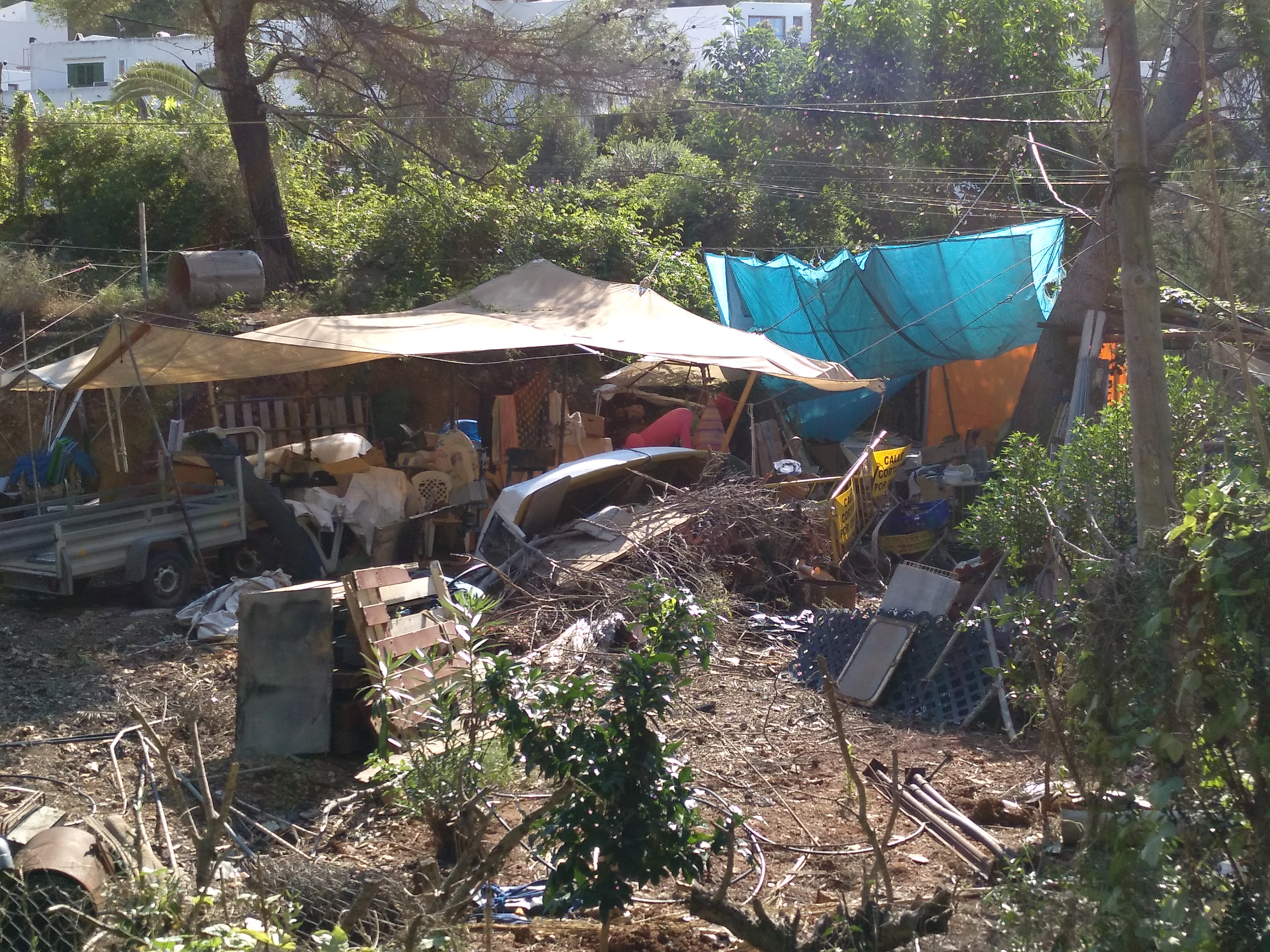 @Noudiari / El Ayuntamiento de Santa Eulària ha dedicado unos dos meses de trabajo en colaboración con la empresa Herbusa para limpiar unas parcelas particulares ubicadas en el torrente de Cala Llonga y que suponían un grave riesgo para la seguridad del patrimonio natural y de los vecinos por el alto riesgo de incendio o de contaminación de la tierra. En total, se han retirado cerca de 270 toneladas de residuos, algunos de ellos peligrosos, con un coste para la Administración (y que se reclama al interesado además de la cantidad que se le pueda imponer a raíz del expediente sancionador abierto) de casi 28.500 euros.