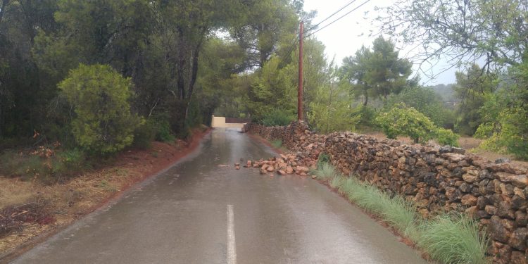 Por otro lado, en el Camí de sa Font des Murtar, en la zona de es Canar, un muro se ha derrumbado sobre la calzada y ha sido necesaria la intervención de los operarios para retirar las piedras del asfalto para que se pudiera circular de nuevo por este tramo.