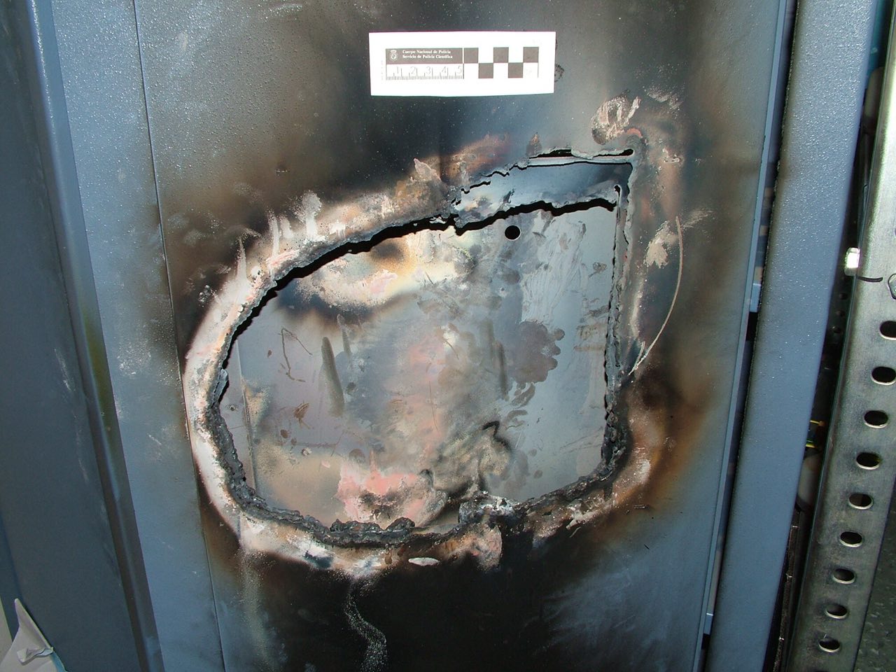 La caja fuerte cortada con el soplete para perpetuar el robo. Foto: El Temps