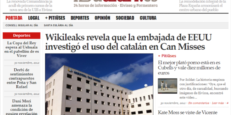 NouDiari nació el 1 de diciembre de 2012 y en su primera portada informaba, entre otros temas, de que la embajada de Estados Unidos investigó el uso de la lengua catalana en el (viejo) hospital de Can Misses o que el mejor plató de la industria pornográfica estaba en Ibiza, concretamente en es Cubells (Sant Josep), y tenía un precio de 10 millones de euros, la mitad del presupuesto con el que contaría el Consell de Formentera en 2013.