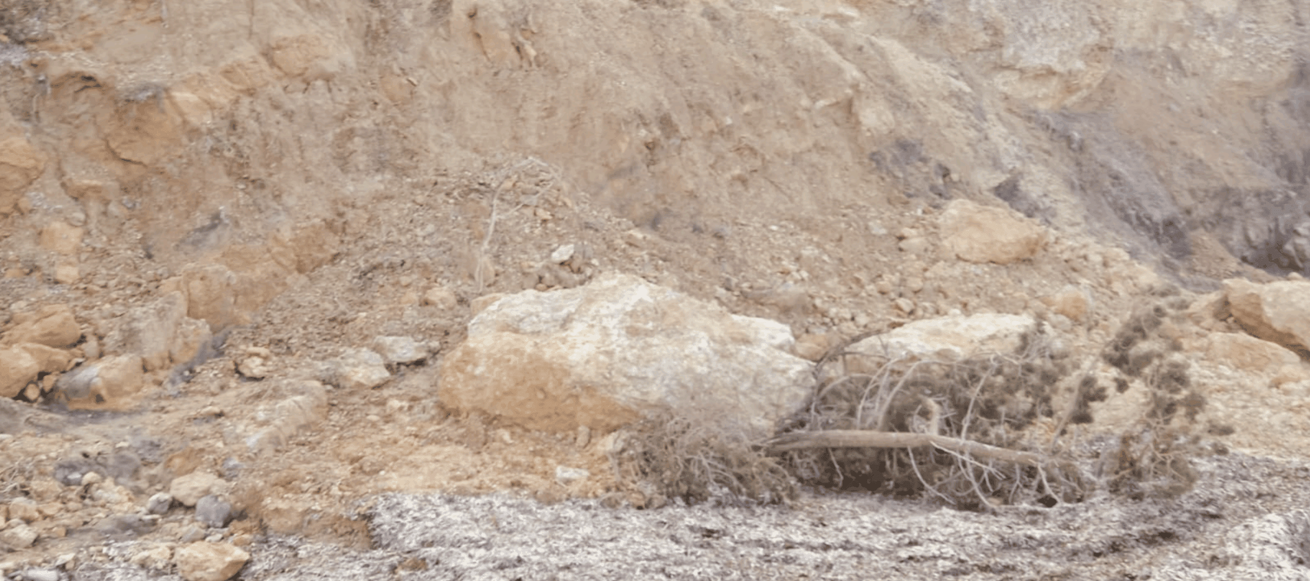 Hay que subrayar que sobre la playa han caído rocas de enorme tamaño, algunas sobre la playa y otras directamente al mar, además de un evidente corrimiento de tierras sobre la arena, mientras que otros grandes bloques parecen pender de un hilo del acantilado, muy afectado por la riada.