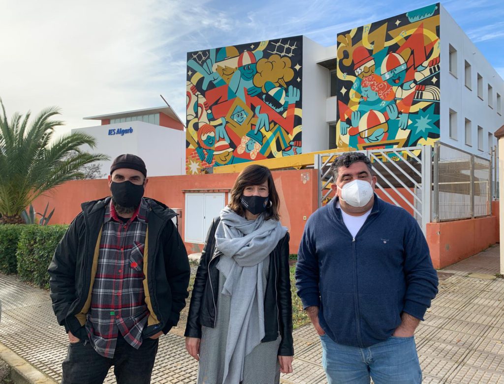 Junt amb el promotor del certamen cultural, el grafiter Hosh, per comptes de portar a l’illa els quatre artistes que havien de visitar-la gairebé simultàniament per realitzar distintes intervencions a centres educatius del municipi, s’ha optat per buscar a creadors locals amb els que realitzar aquestes intervencions al llarg del curs. Així, la primera col·laboració que ha vist la llum és la del propi Hosh amb l’IES Algarb de Sant Jordi.