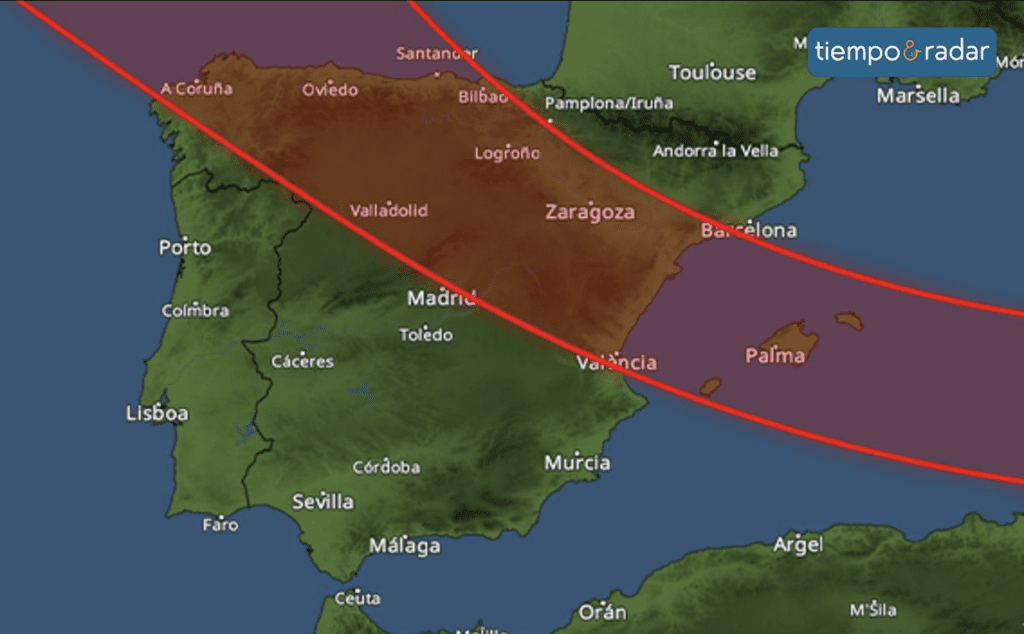 Zonas de España donde mejor se verá el eclipse solar total de 2026, entre ellas Ibiza y Formentera. Imagen de Tiempo & Radar España