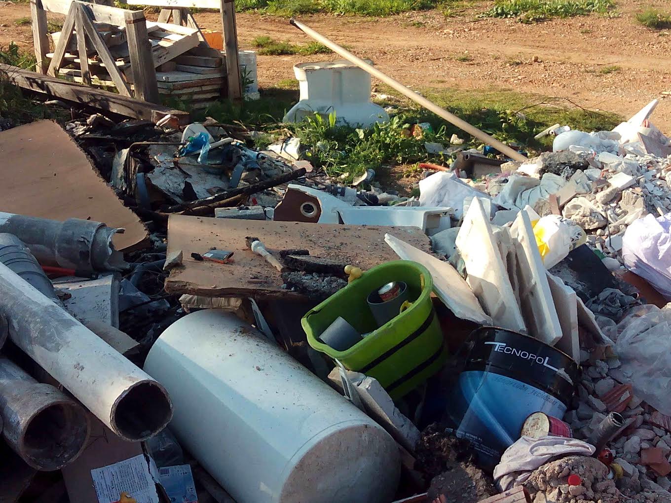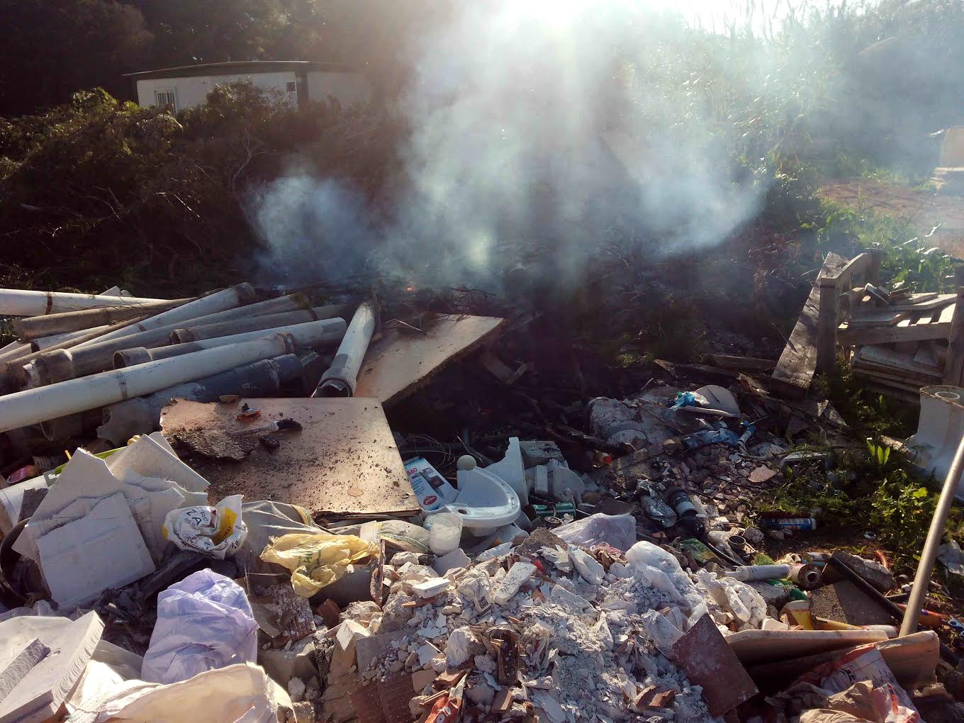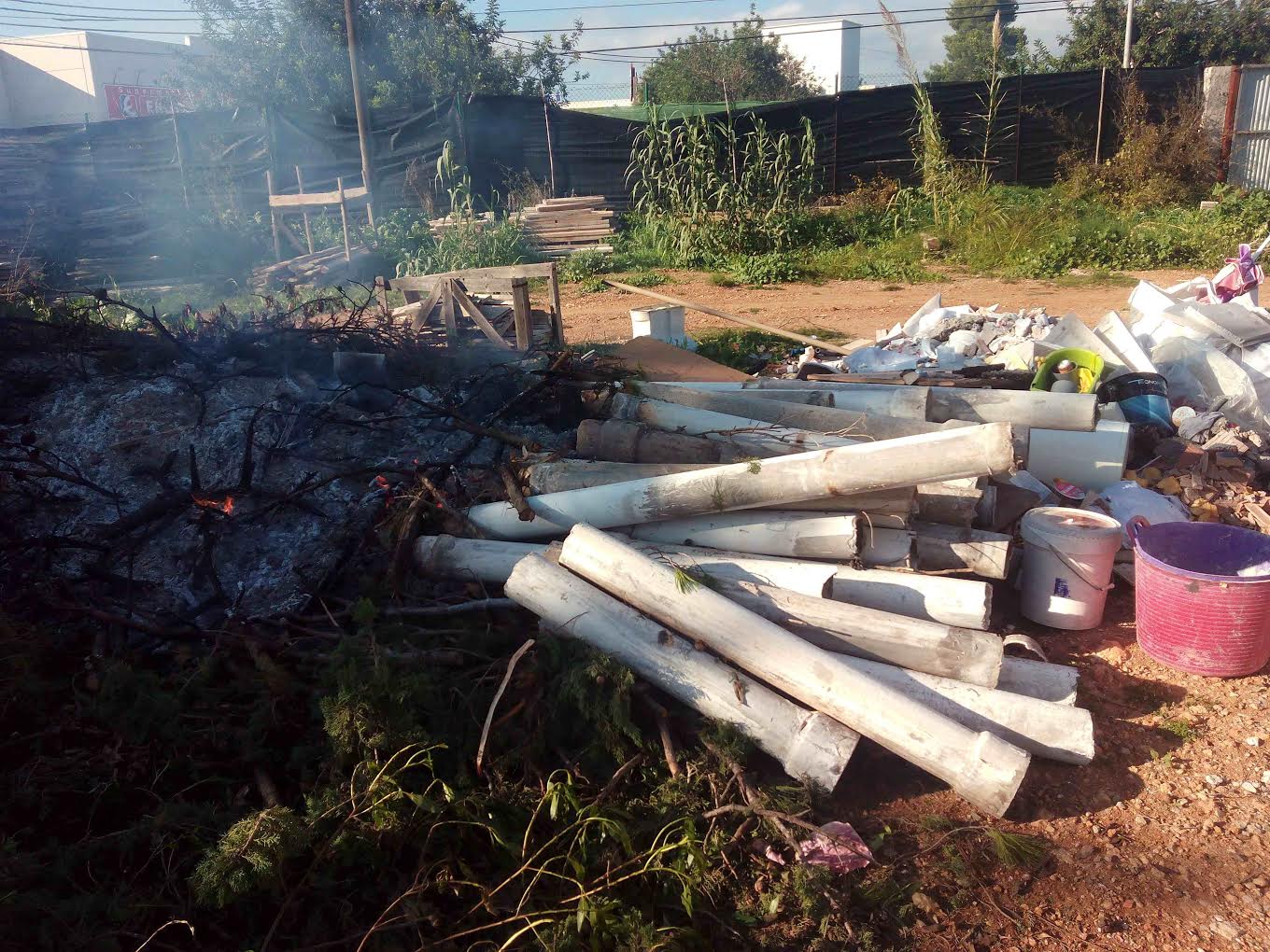 @Noudiari/ El área de Medio Ambiente del Ayuntamiento de Santa Eulalia del Río ha abierto un expediente a una empresa de construcción tras descubrir que personal suyo estaba quemando tubos y planchas de uralita, tela asfáltica, plásticos y otros productos, así como un motor de lavadora y un calentador junto con restos de poda.