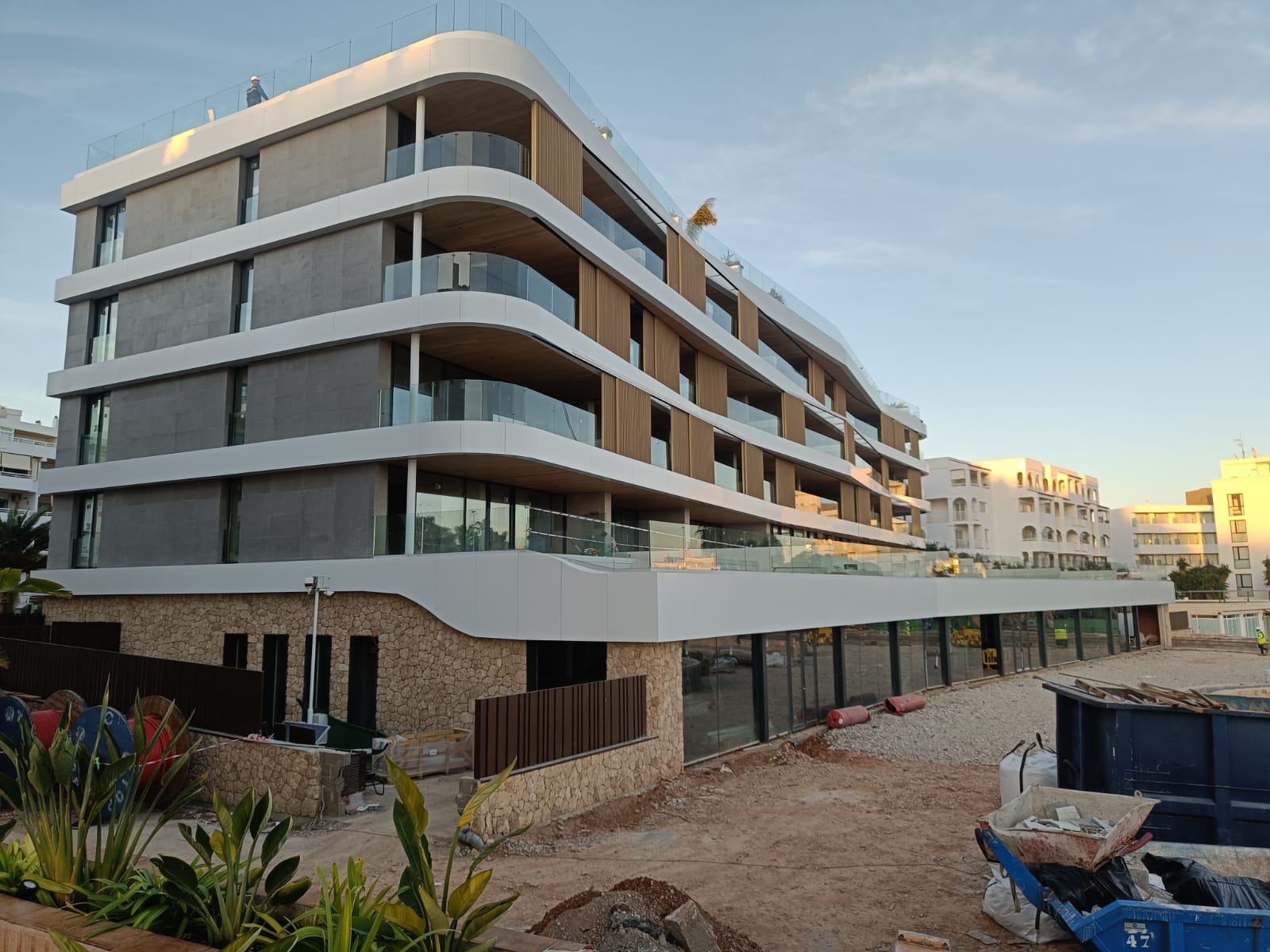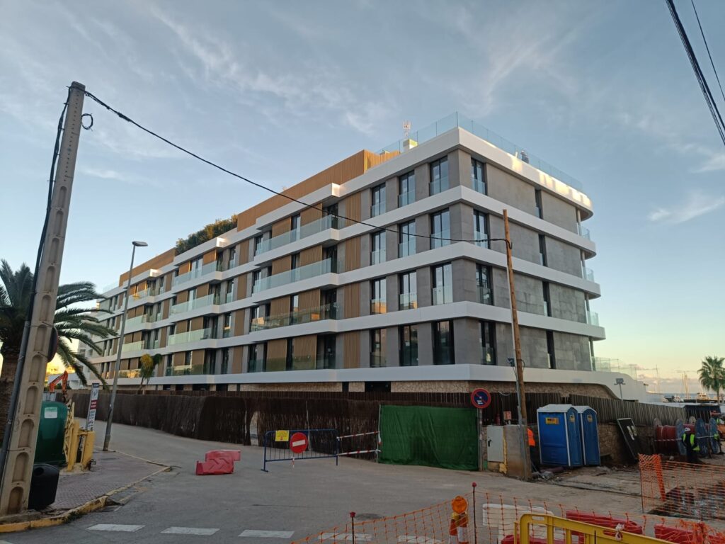 La biblioteca y el centro para personas mayores estarán ubicados en el bajo de este edificio de nueva construcción al lado del paseo marítimo y puerto deportivo de Santa Eulària. Fotos N. G. G. Noudiari.es