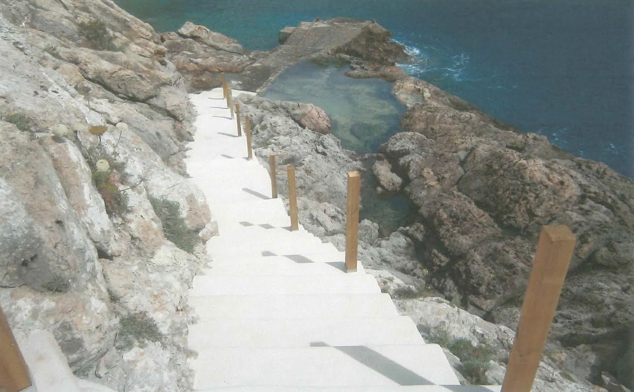 @Noudiari/ El Ayuntamietno de Santa Eulària ha ordenado la demolición de unas escaleras que una promotora había ejecutado sin licencia para conectar una vivienda con el mar en la urbanización de Roca Llisa. Además, se ha impuesto una sanción de casi 17.350 euros y se ha dado traslado a Demarcación de Costas para que determine si debe ejecutar ninguna otra actuación sancionadora por esta intervención en Dominio Público.
