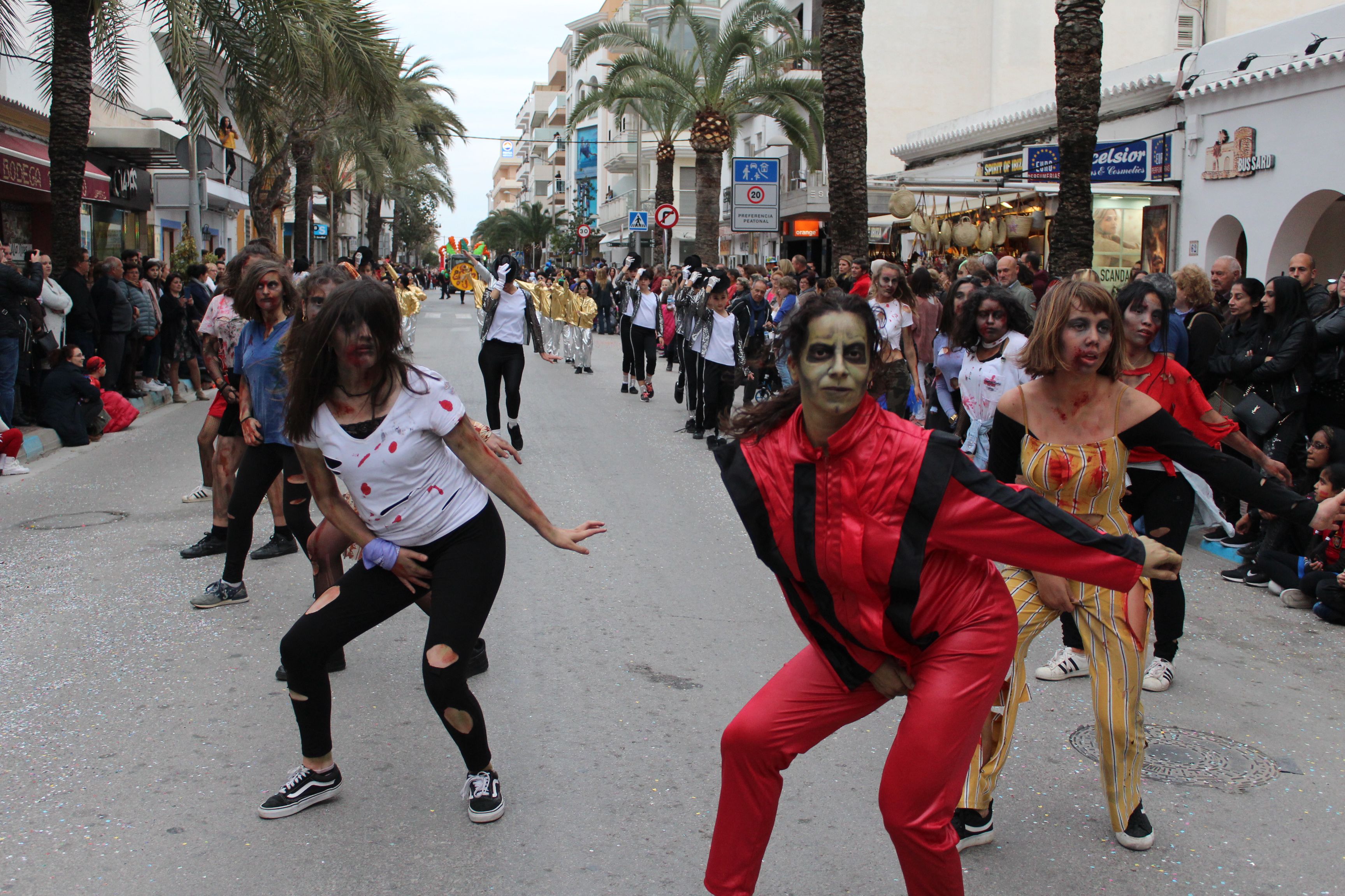 El municipio al completo se ha volcado en la cabalgata y ha meneado el esqueleto al paso de las comparsas de academias de bailes, las más coreografiadas, destacando la actuación de Eivisalsa que se lleva dos premios.