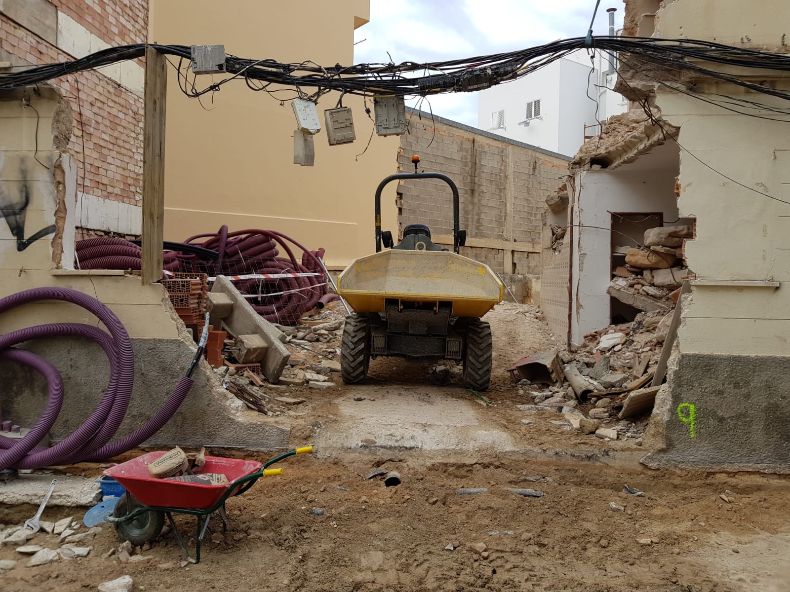 @Noudiari /El edificio Santa Margalida Sur, ubicado en los números tres, cinco y siete de la avenida de Isidor Macabich, sigue en pie por la mala organización del Ayuntamiento de Vila pese a que se ha cumplido el plazo de ejecución de las obras de demolición. Los trabajos, adjudicados a la empresa Construcciones y Desmontes Ribera Navarra por un total de 180.723,21 euros y un periodo de ejecución de tres meses, se iniciaron oficialmente el pasado 19 de febrero, pero en la fase previa no se tuvieron en cuenta algunos asuntos importantes, como la retirada del cableado eléctrico, lo que ha provocado que se siga trabajando una vez entrados los meses de mayor afluencia de turistas. Los primeros taladros comenzaron a borrar del mapa el inmueble el 26 de febrero.