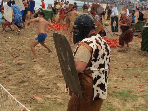 Esta vez no han sido necesarias las lanzas ni flechas o catapultas y espadas empleadas en su momento. Ha bastado con los más de 20.000 tomates que han corrido en una y otra dirección en forma de proyectil en un ‘cruento’ viaje de ida y vuelta que se ha cobrado numerosas ‘víctimas’, ya que prácticamente nadie se ha librado de un impacto.