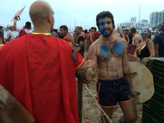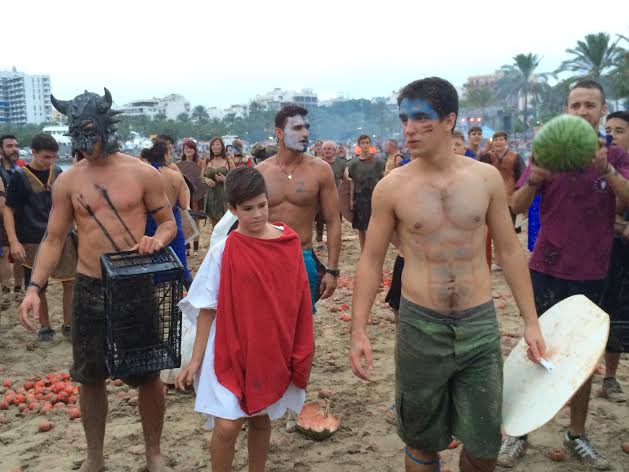 Tras la batalla, los guerreros se han aseado con un refrescante chapuzón en la orilla de la playa que les ha permitido continuar de fiesta en uno de los últimos actos programados con motivo de las Festes de Sant Bartomeu de este año.