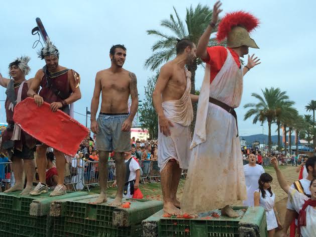 @Noudiari / Romanos y cartagineses han solventado este sábado sus diferencias sobre la arena de s’Arenal de Sant Antoni a tomatazo limpio, donde han rememorado un año más las Guerras Púnicas, o Romanas (depende del lado al que se estuviese), que hubo en su tiempo entre las que fueron las dos principales potencias del Mediterráneo durante los años 264 y 146 a.C.