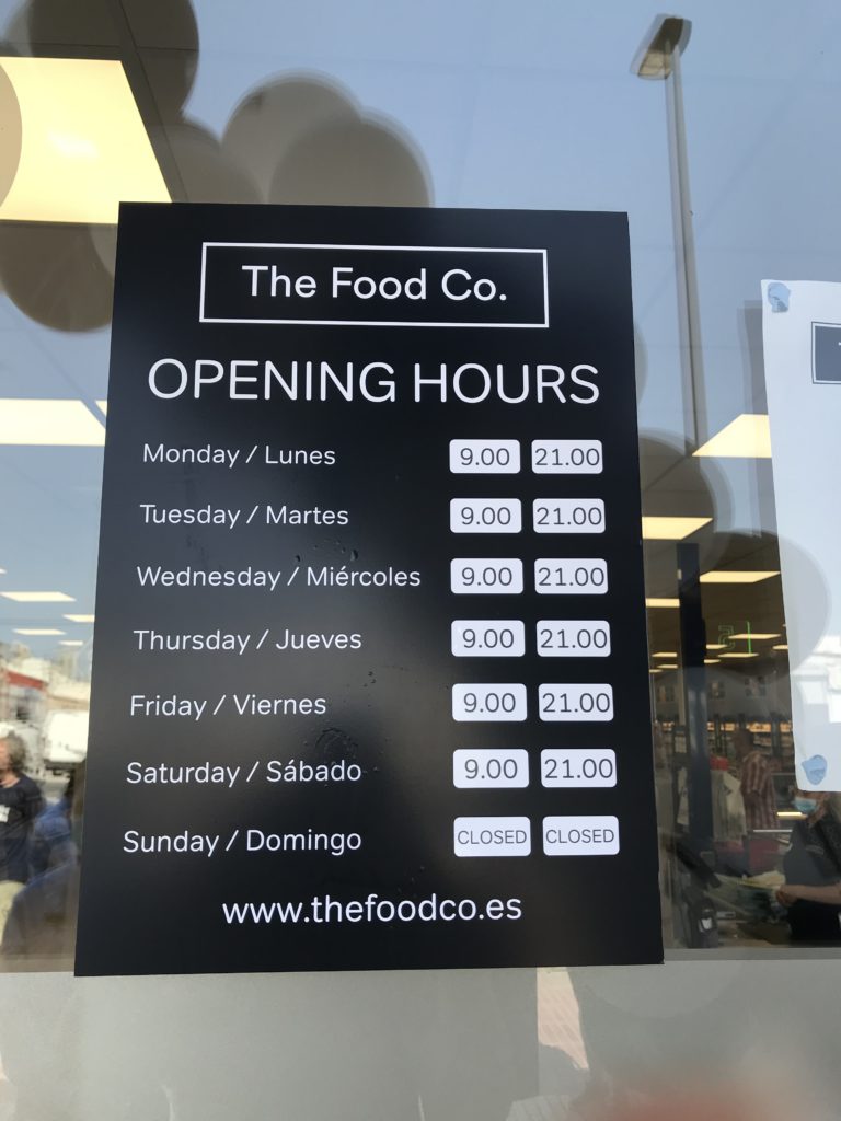 El supermercado tiene un horario continuo de 9 a 21 horas todos los días salvo los domingos, que cierra.