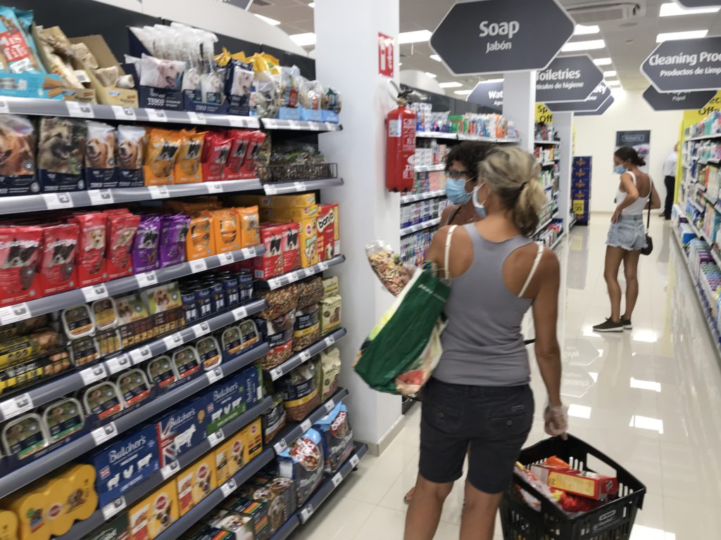Numerosos británicos residentes en Ibiza se han acercado hoy a este supermercado, que tiene toda la cartelería principal en inglés aunque con traducción al castellano.