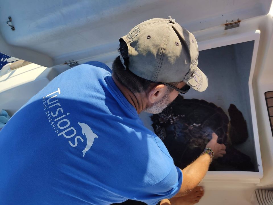 Tursiops, que trabaja en la conservación y protección de los cetáceos, ha vuelto en septiembre a Ibiza seguir desarrollando el proyecto ‘Ishmael’. Durante una de ellas tuvieron que realizar cambios en su programa y recorrer 35 millas con una meteo complicada para socorrer a la tortuga. «Gracias a los Agentes de Medi Ambient que a pesar de lo intempestivo de la hora, vinieron a recogerla», destacan desde la Asociación.