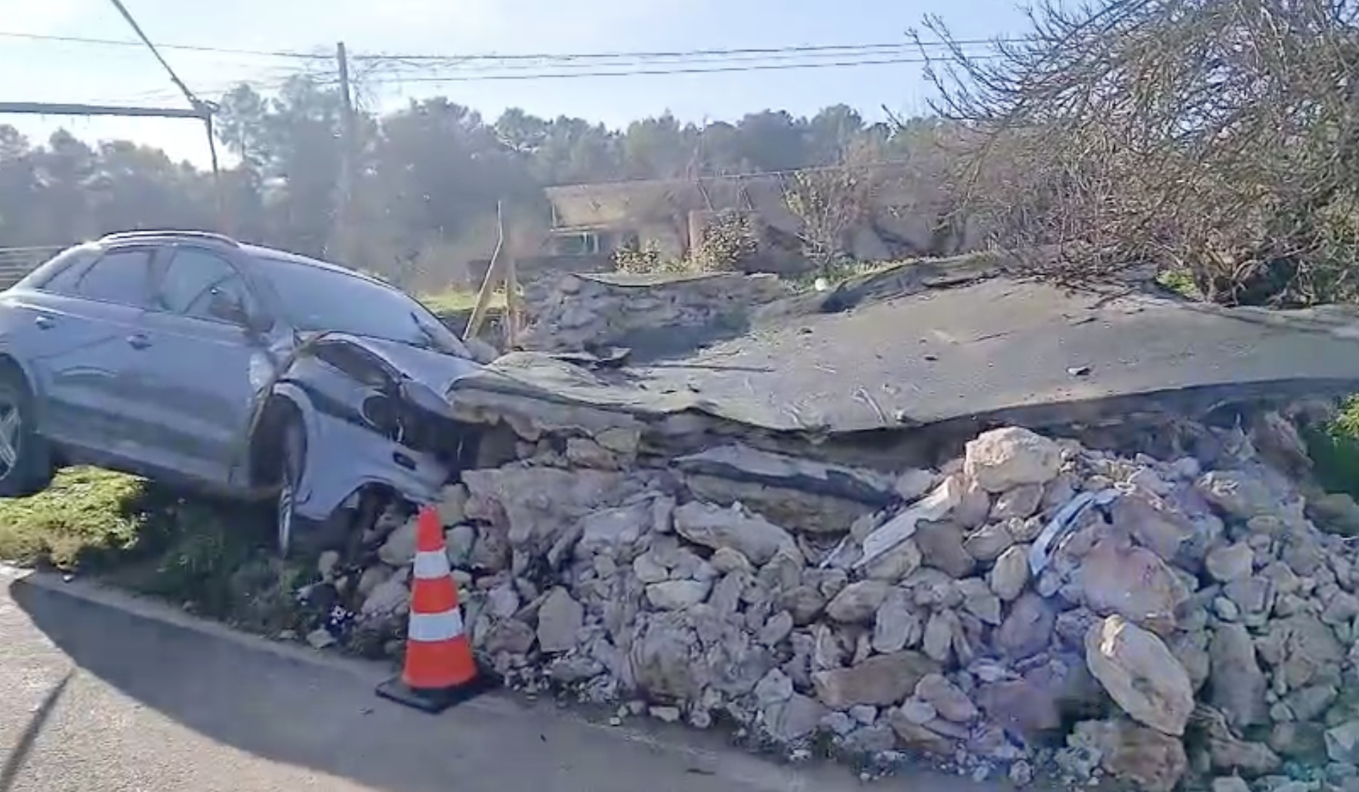 Un coche de la marca Audi Q3 ha derribado una caseta agrícola de piedra tras chocar violentamente contra ella y de madrugada en un tramo de 30 km/h de la carretera que une Sant Rafel con Santa Agnès.