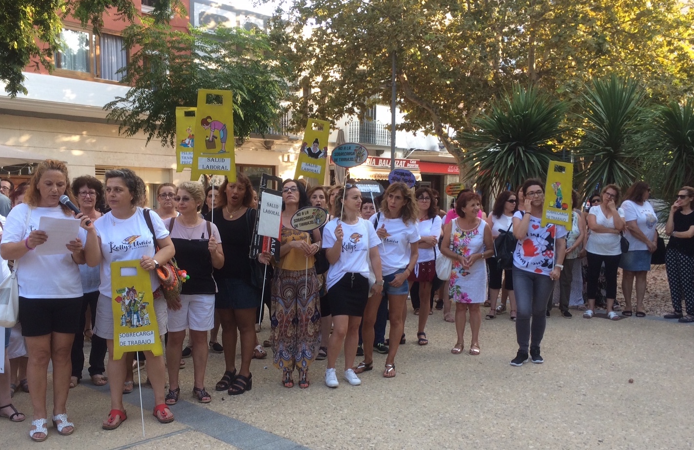 @Noudiari/ Un centenar de kellys se ha reunido esta tarde en el paseo de Vara de Rey, en Ibiza, para exigir a los políticos que tomen la medidas necesarias “para que nuestro trabajo no sea una carga insoportable” y poder llevar una vida “digna”.