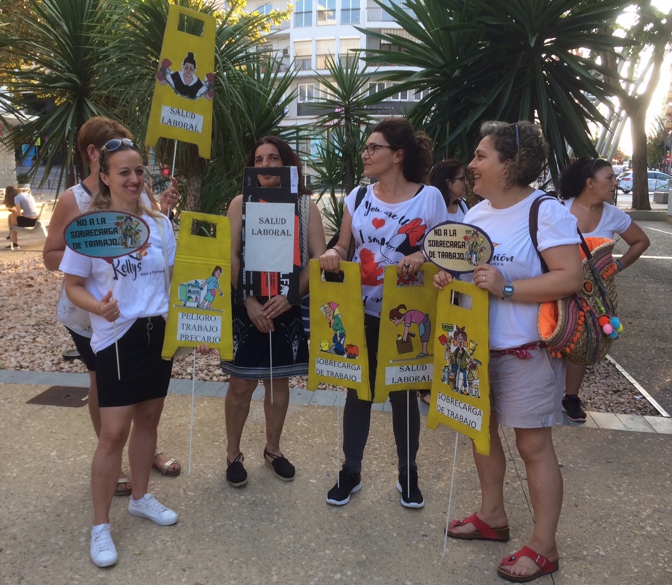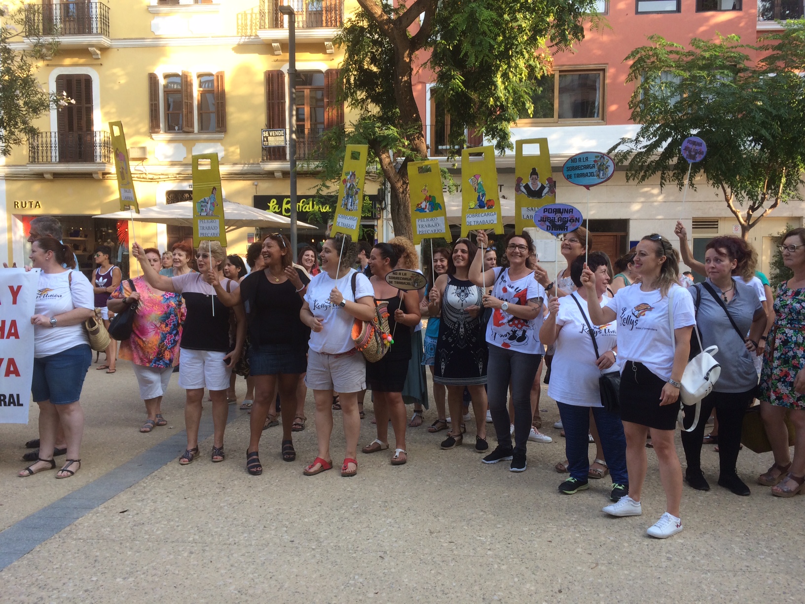 En una pancarta desplegada se podía leer las principales reivindicaciones de las kellys de Ibiza y Formentera: jubilación anticipada, menos carga de trabajo y el rechazo a la explotación laboral.