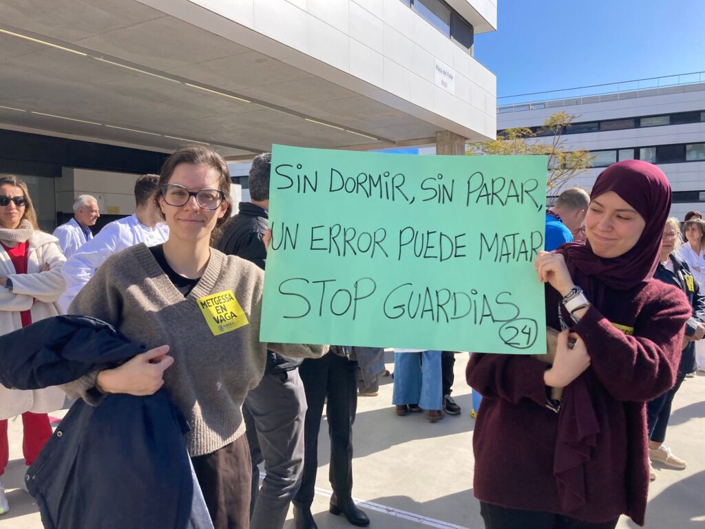 Entre las manifestantes de hoy en Can Misses estaba Pilar García, ginecóloga de Can Misses desde hace diez años. La ginecóloga explica a Noudiari que en su departamento de Ginecología y Obstetricia solo hay una persona de guardia, mientras que este departamento atiende una media de 1.100 partos al año, y hay cinco plazas sin cubrir. “Amamos nuestra profesión”, dice García, “pero nos está costando mucho trabajo asumirla”.