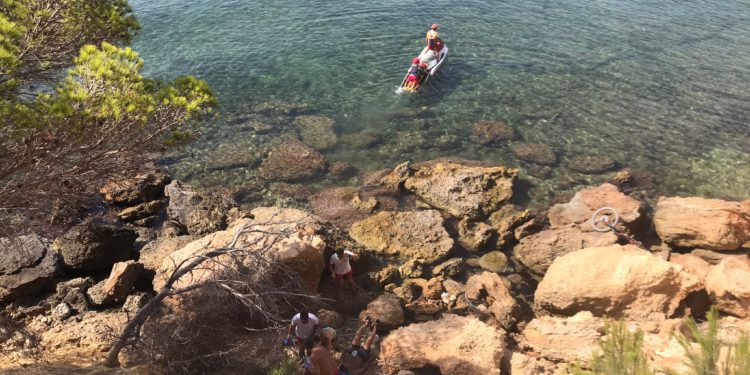 El Servicio de Socorrismo del Ayuntamiento de Santa Eulària, prestado a través de Cruz Roja, ha atendido y evacuado por mar esta mañana a un hombre alemán de unos 50 años que se había precipitado desde una altura de unos 8 metros en una zona de rocas del litoral entre s’Estanyol/es Niu Blau y Cala Pada.