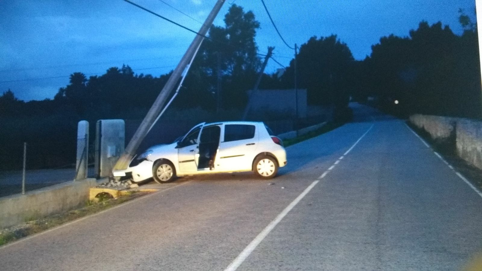 @Noudiari / El conductor de un turismo ha perdido el control del vehículo que conducía esta tarde, sobre las siete, en la carretera vecinal de Porroig a es Cubells. Se ha estrellado contra un poste de hormigón y otro de madera de la luz y de teléfono, respectivamente, así como con el muro de una parcela.