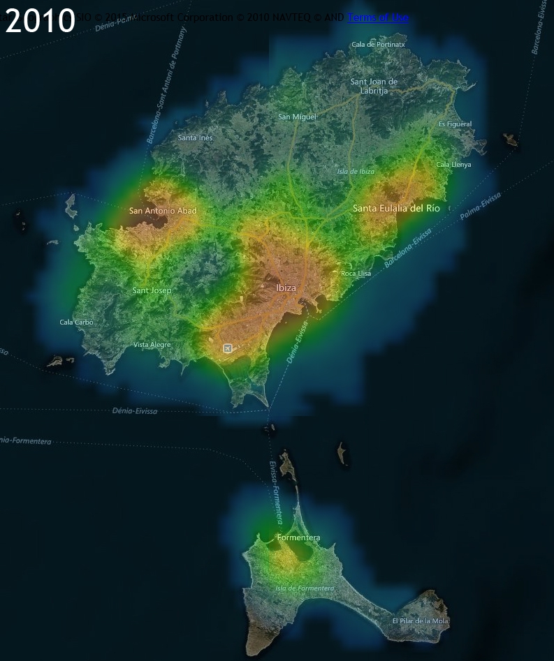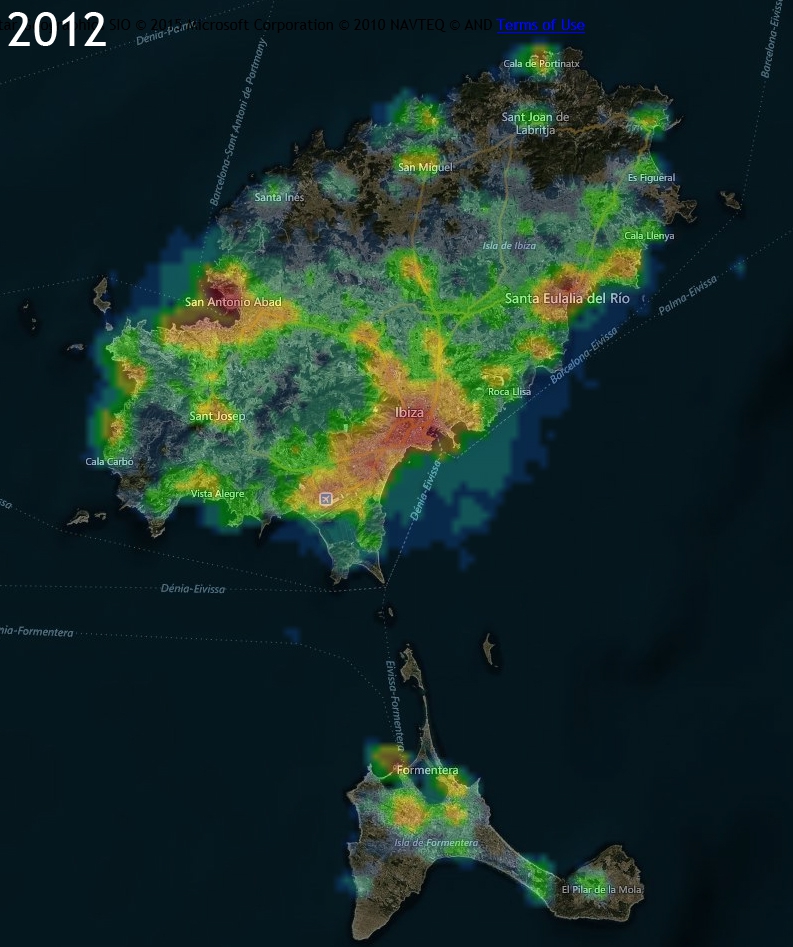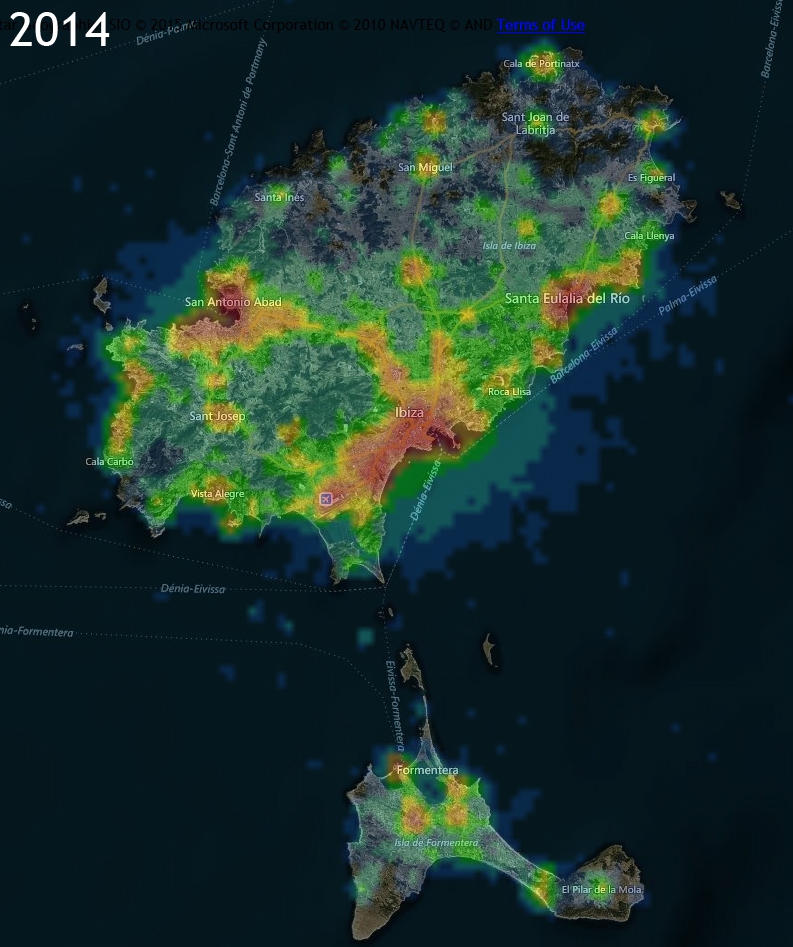 Otros estudios, como las imágenes obtenidas desde satélites en el espacio, demuestran una creciente contaminación lumínica en la isla de Eivissa, con un mayor número de luminarias artificiales durante la noche en todas las épocas del año, pero singularmente en verano.