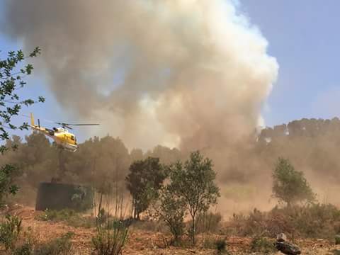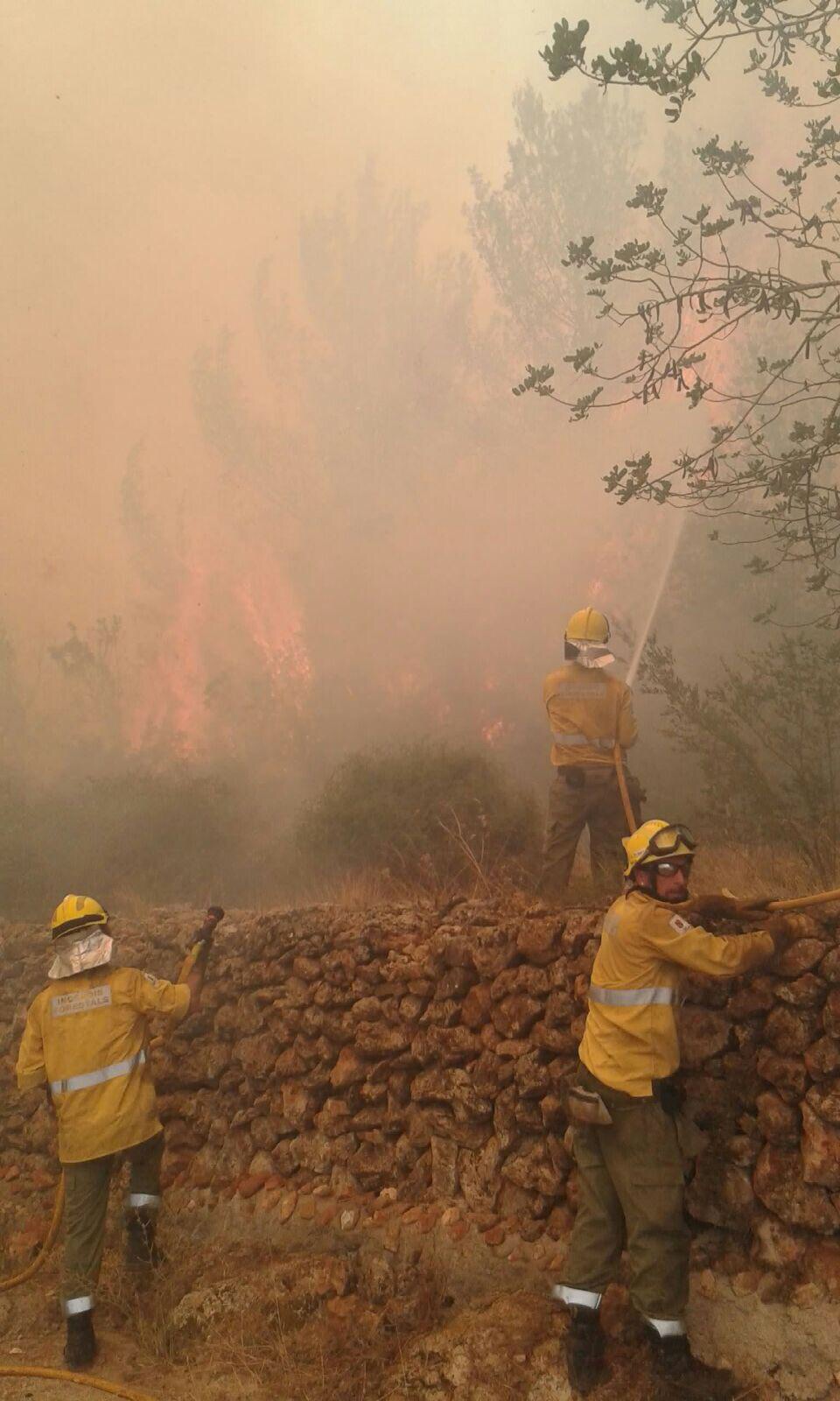 El Ibanat ha informado que en la zona están actuando dos aviones Air Tractor (ACT), un avión anfibio Canadair, dos helicópteros, un vehículo de Vigilancia y Primera Intervenció (VVPI), cuatro brigadas, un avión de coordinación, un Técnico de dirección y extinción (DTEX) y cuatro AMA.