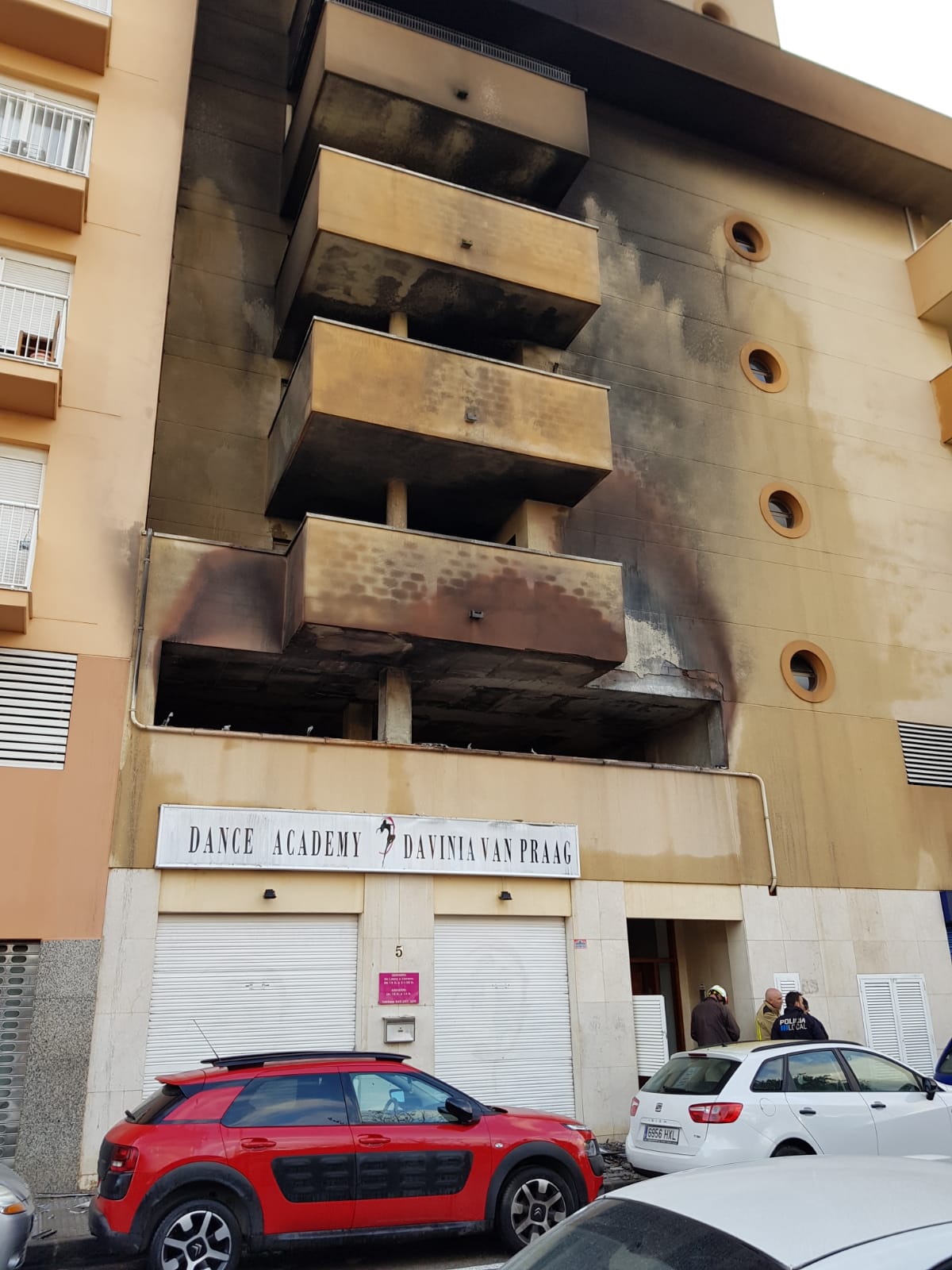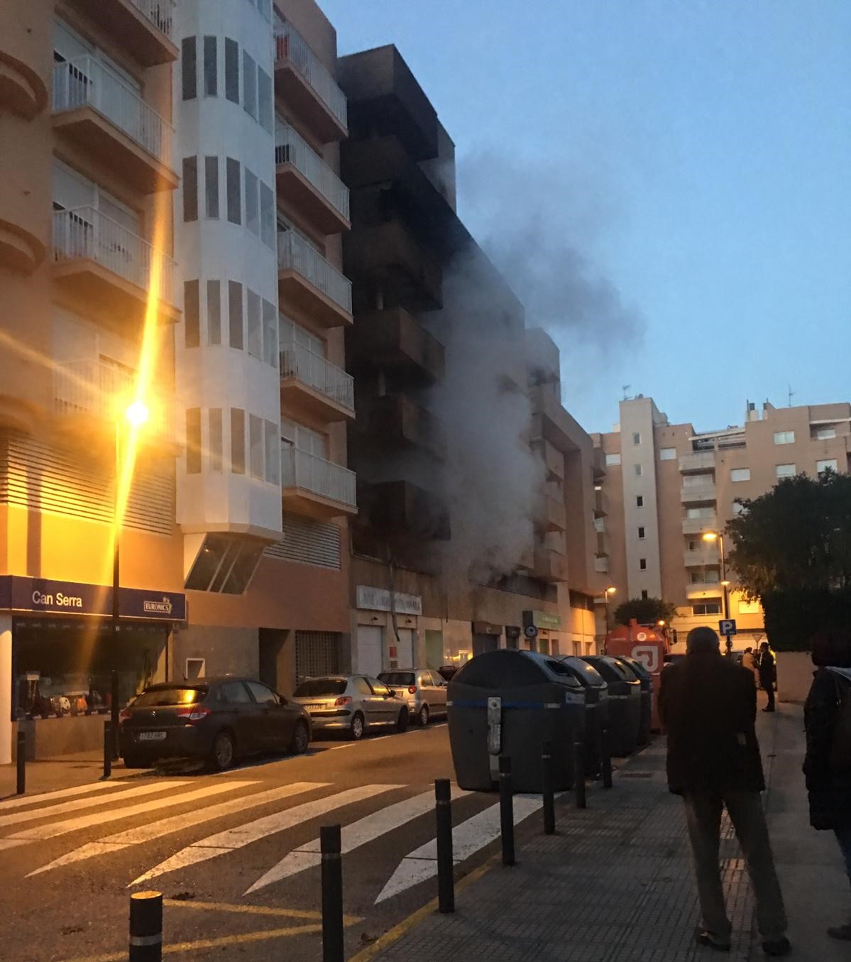 @Noudiari /Un incendio declarado esta madrugada en un parking de la calle Marià Llobet Roman en el municipio de Eivissa ha obligado a desalojar a los vecinos de al menos 9 viviendas y se han visto afectados por las llamas al menos ocho vehículos, cinco de ellos completamente calcinados.