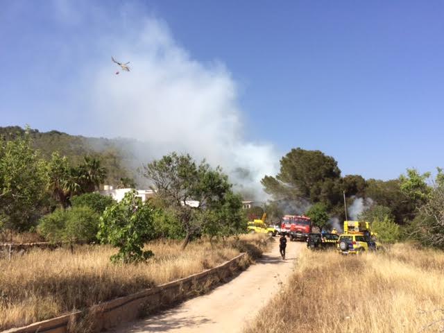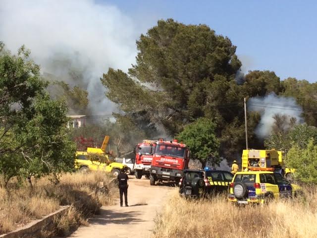 @L.A./ A estas horas, un incendio que tiene lugar en el kilómetro 2,3 de la carretera de Sant Josep, pasando sa Carroca, ha obligado a desalojar tres viviendas, según han informado los vecinos a Nou Diari.