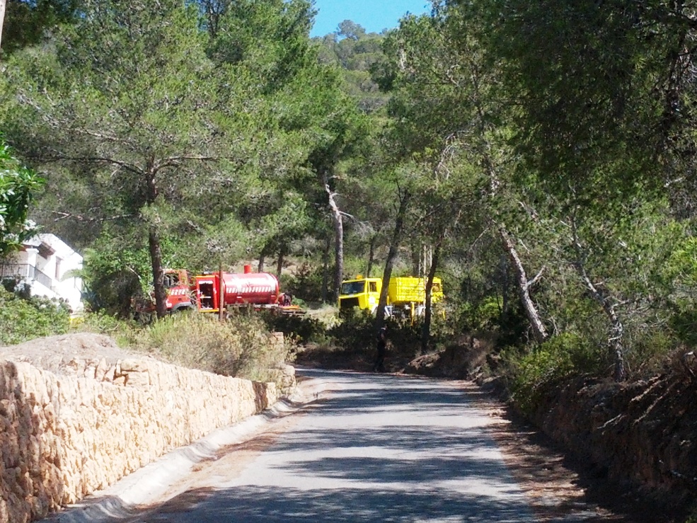 Hasta el lugar del suceso se desplazaron tres camiones del Parque de Bomberos de Ibiza, además de varias dotaciones del Ibanat, un avión, un helicóptero e integrantes de la Guardia Civil y Policía Local.