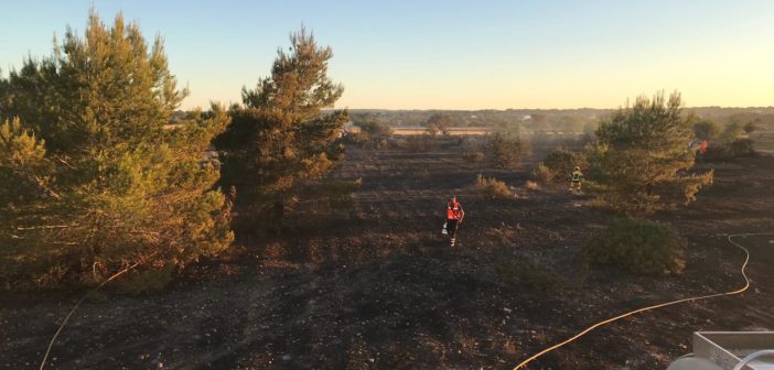 @Noudiari / Un incendio ha calcinado este sábado alrededor de dos hectáreas de terreno agrícola entre Sant Feran y el Camí Vell de la Mola, en Formentera. La columna de humo generada por las llamas era visible desde varios puntos de la isla, informa Ràdio Illa y el suceso ha causado gran expectación entre los residentes, que han empleado intensamente los servicios de mensajería para compartir fotografías y vídeos del siniestro.