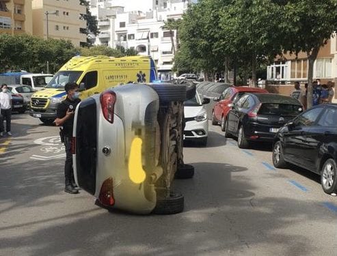 La Policía Local de Ibiza el vehículo en medio de la calzada y a una persona que se alejaba del lugar del accidente.