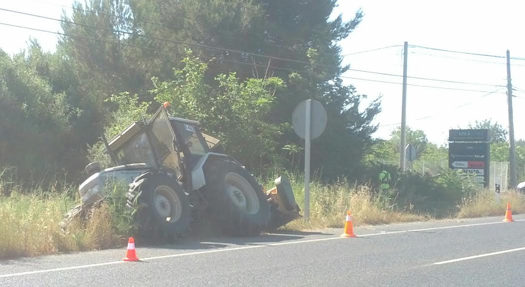 Un tractor desbrozadora, a punto de volcar en la cuneta de la carretera de Santa Eulària