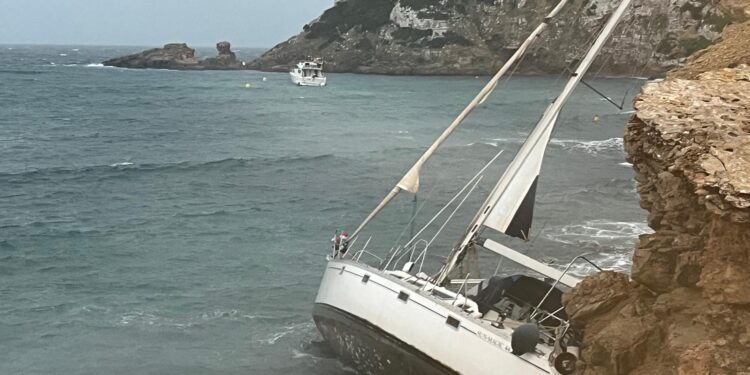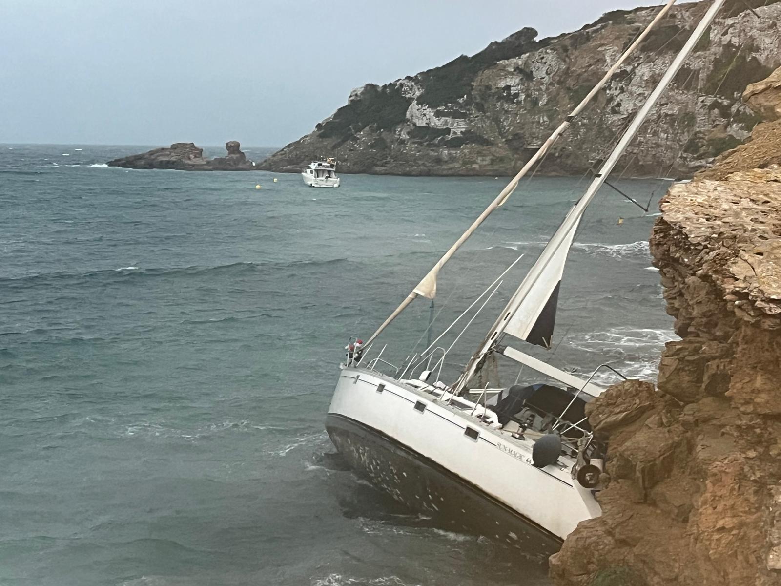 El viento y el mar se están cobrando en Ibiza las primeras víctimas en forma de embarcaciones embarrancadas o varadas en la costa. Una de estas embarcaciones accidentadas ha sido un velero que esta noche ha embarrancado en el acantilado que hay detrás del faro de Botafoc, en dirección norte, y que ha sido descubierto por los paseantes a primera hora de esta mañana.
