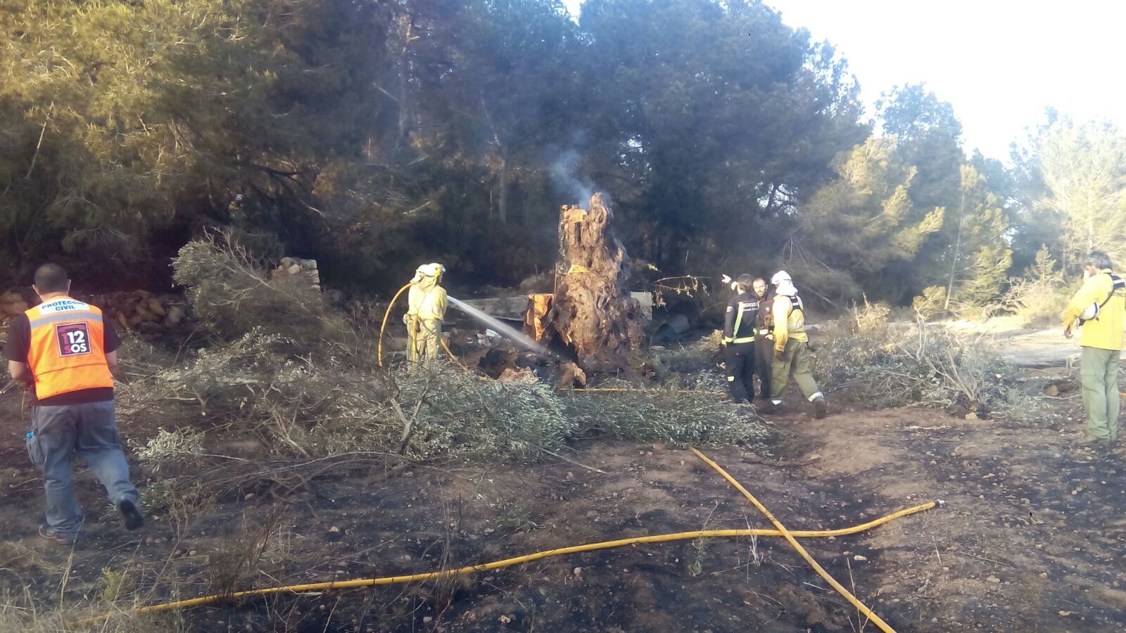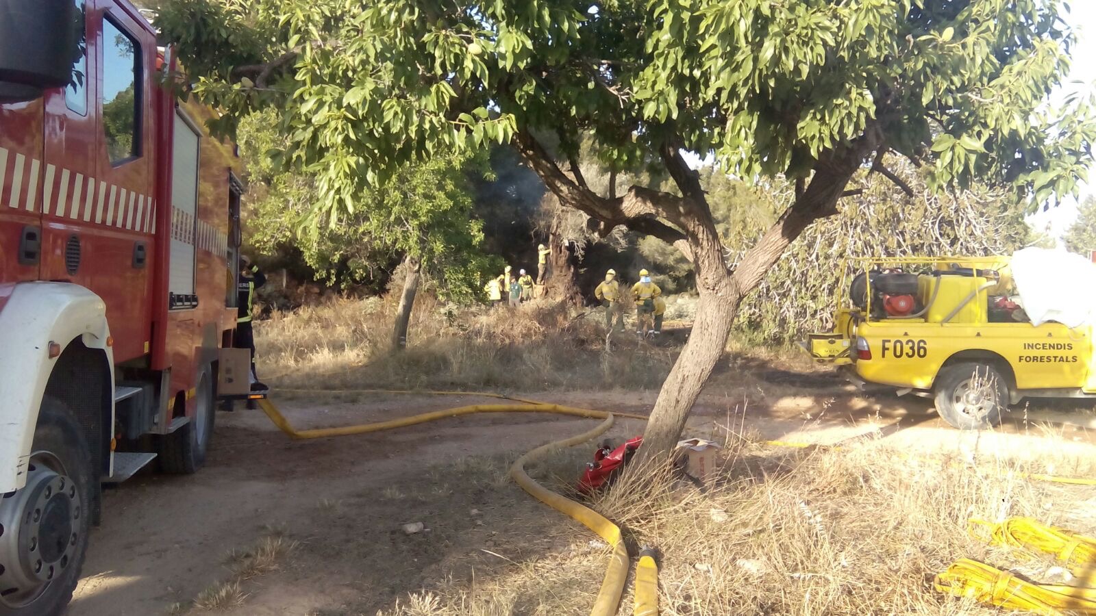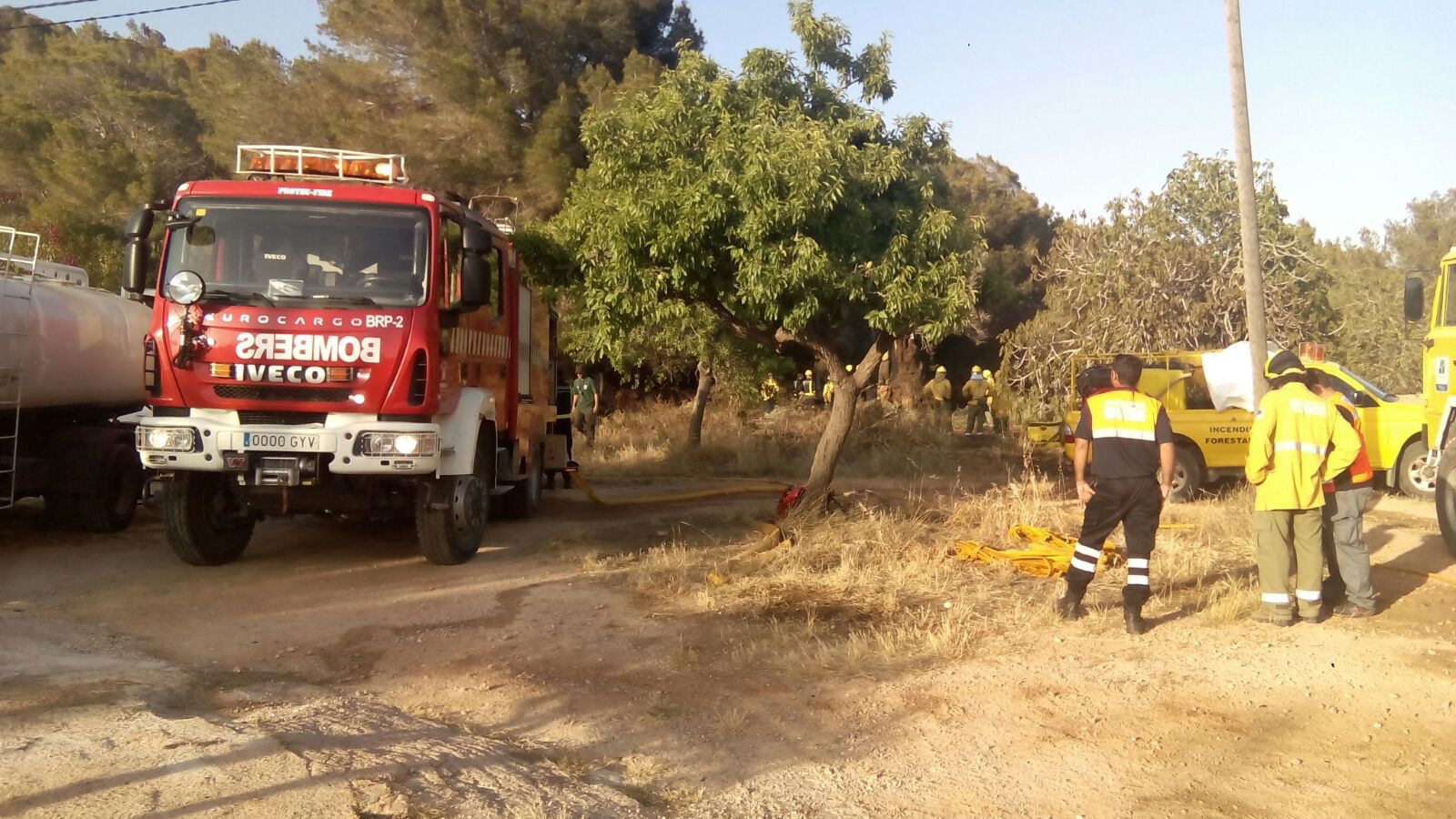 Ibanat y bomberos trabajando en uno de los incendios declarados esta temporada.