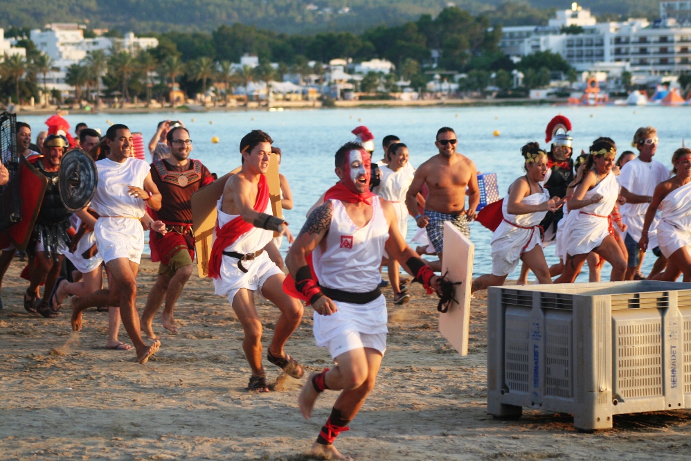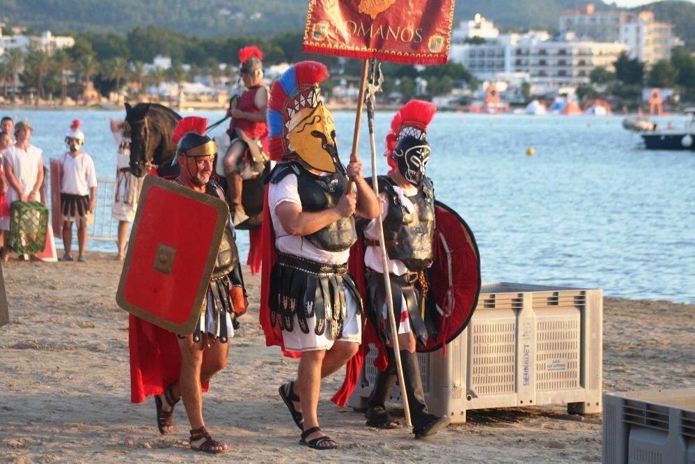 @C. V. / Romanos y cartagineses parlamentan a pie de playa. «¿Qué va a ser, guerra o paz?», preguntan a cada uno de los ejércitos. «Guerra», gritan los legionarios de Sant Josep. «Guerra», repiten los soldados púnicos de Sant Antoni. La suerte está echada o, como diría Julio César, ‘alea jacta est’. La batalla está a punto de empezar.