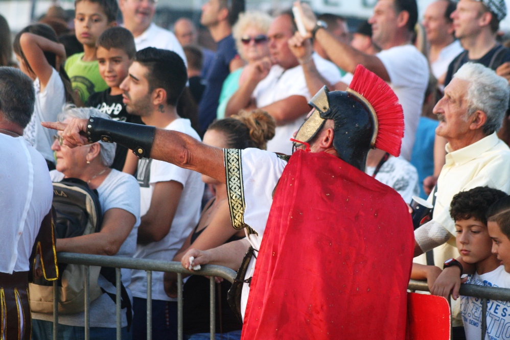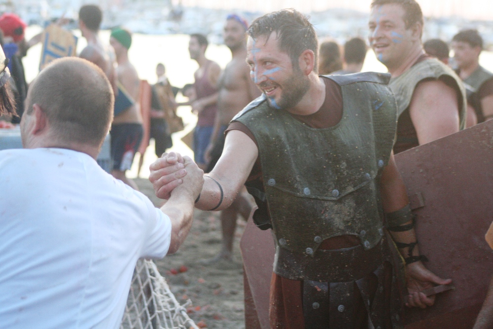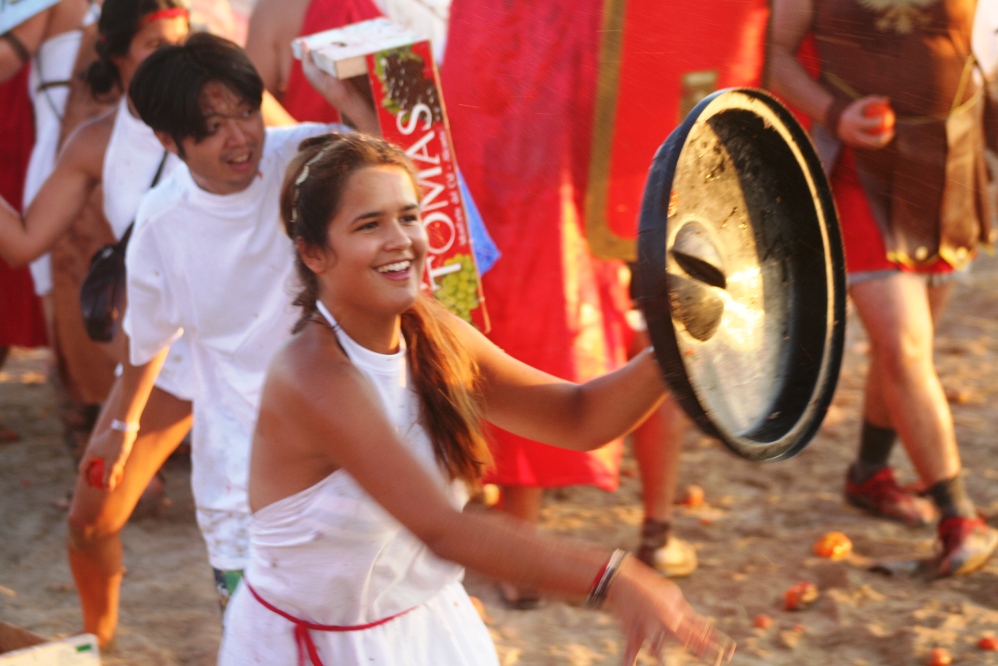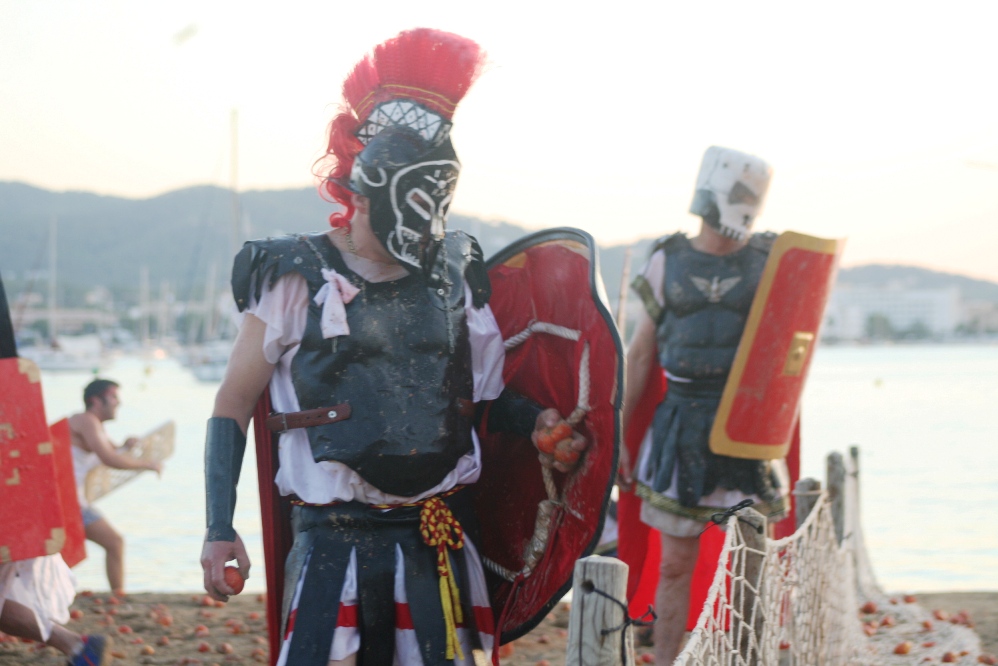 Los romanos, hace más de dos mil años, aniquilaron a los cartagineses, pero en este caso no importa la fidelidad histórica, sino pasar un buen rato. «La historia es lo de menos; aquí lo realmente importante son los tomatazos», reconoce Juan Colomar, caracterizado como «un mercenario espartano pero, como los romanos pagan más, me vengo a su bando».