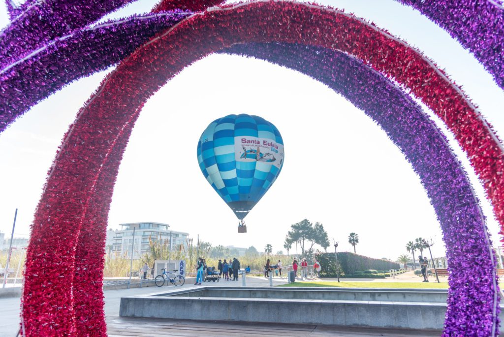 La subida en globo permitió a los pequeños experimentar la sensación de ascender una veintena de metros y contemplar Santa Eulària desde las alturas.